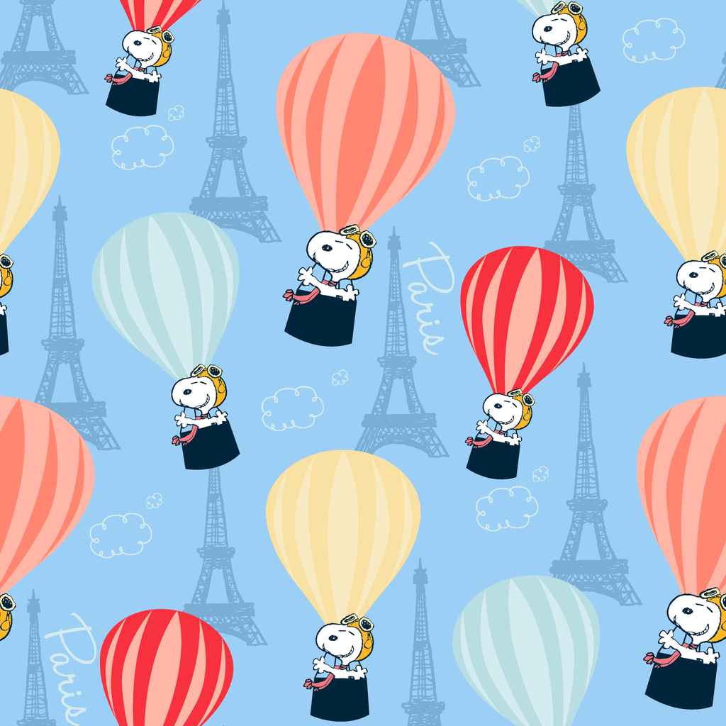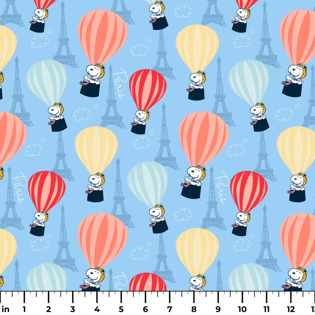Peanuts Snoopy Hot Air Balloons in Paris Fabric