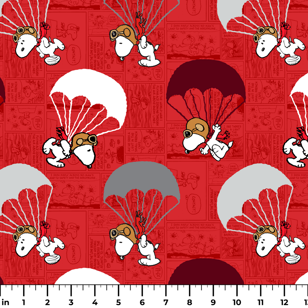 Peanuts Snoopy Parachute Red Comic Fabric