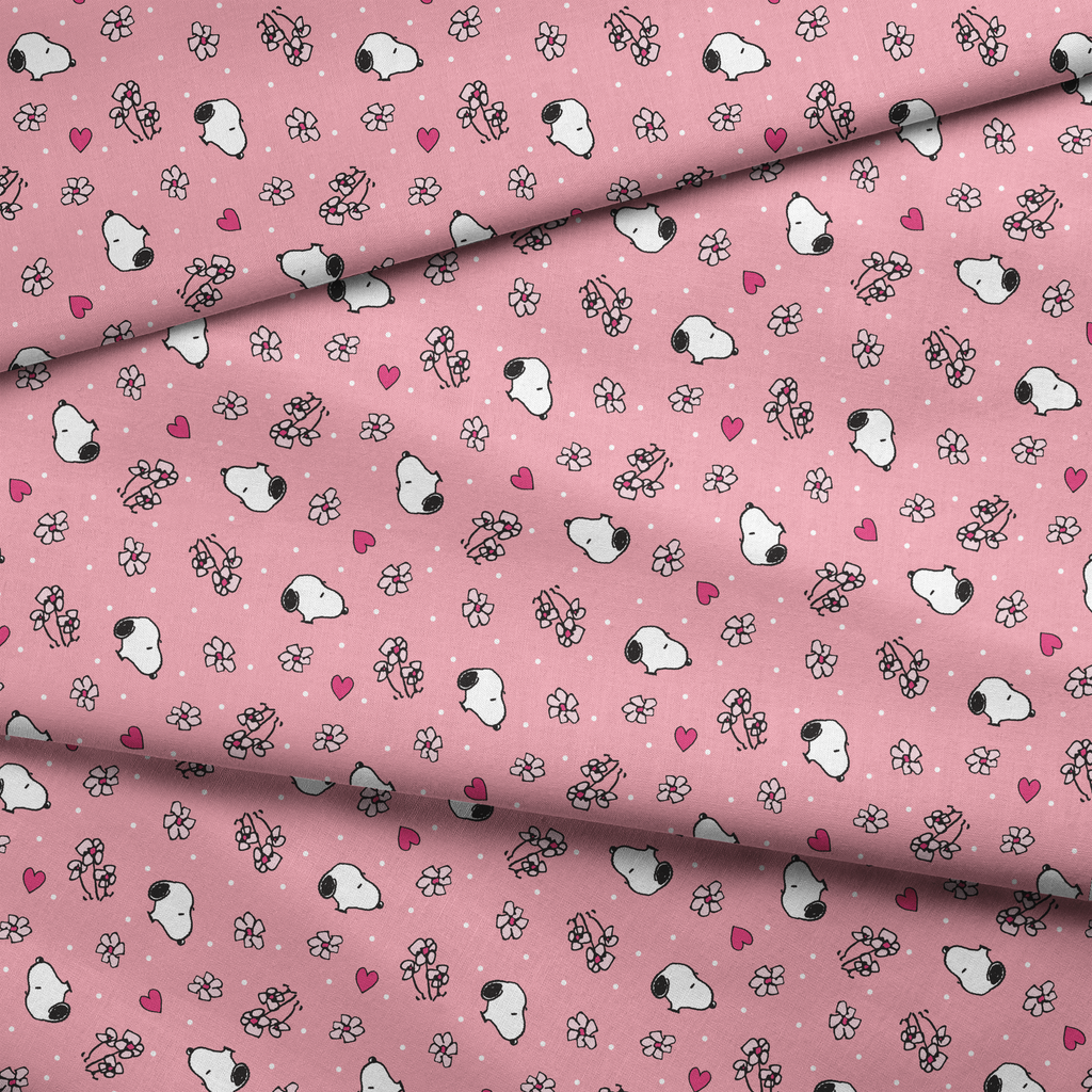 Peanuts Snoopy Pink Flowers and Hearts Fabric