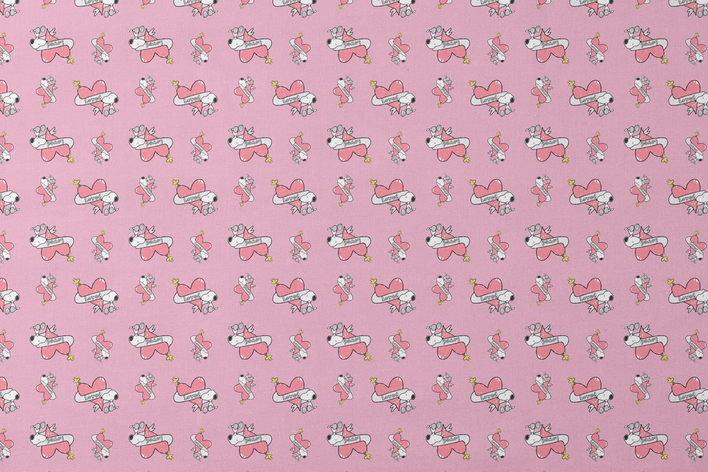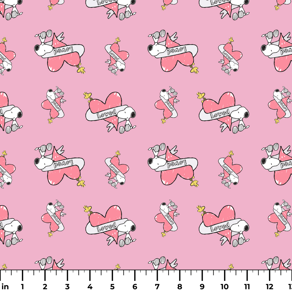 Peanuts Snoopy Pink Hearts Loved Fabric