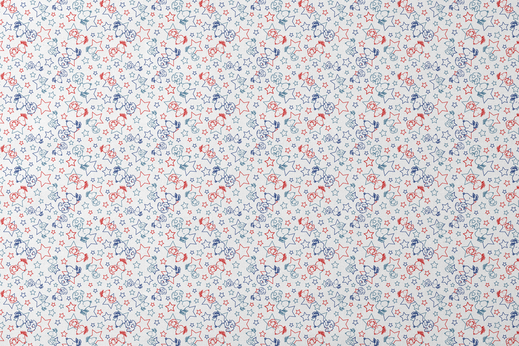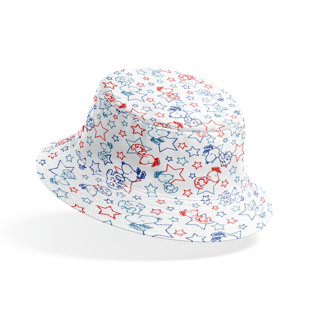 Nostalgic Peanuts Snoopy featuring red and blue stars and poses on a white background. Perfect for seasonal decor, clothing, or craft projects.