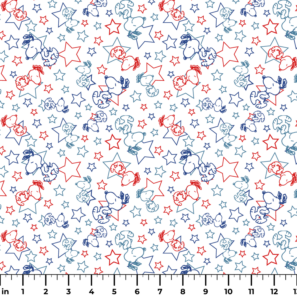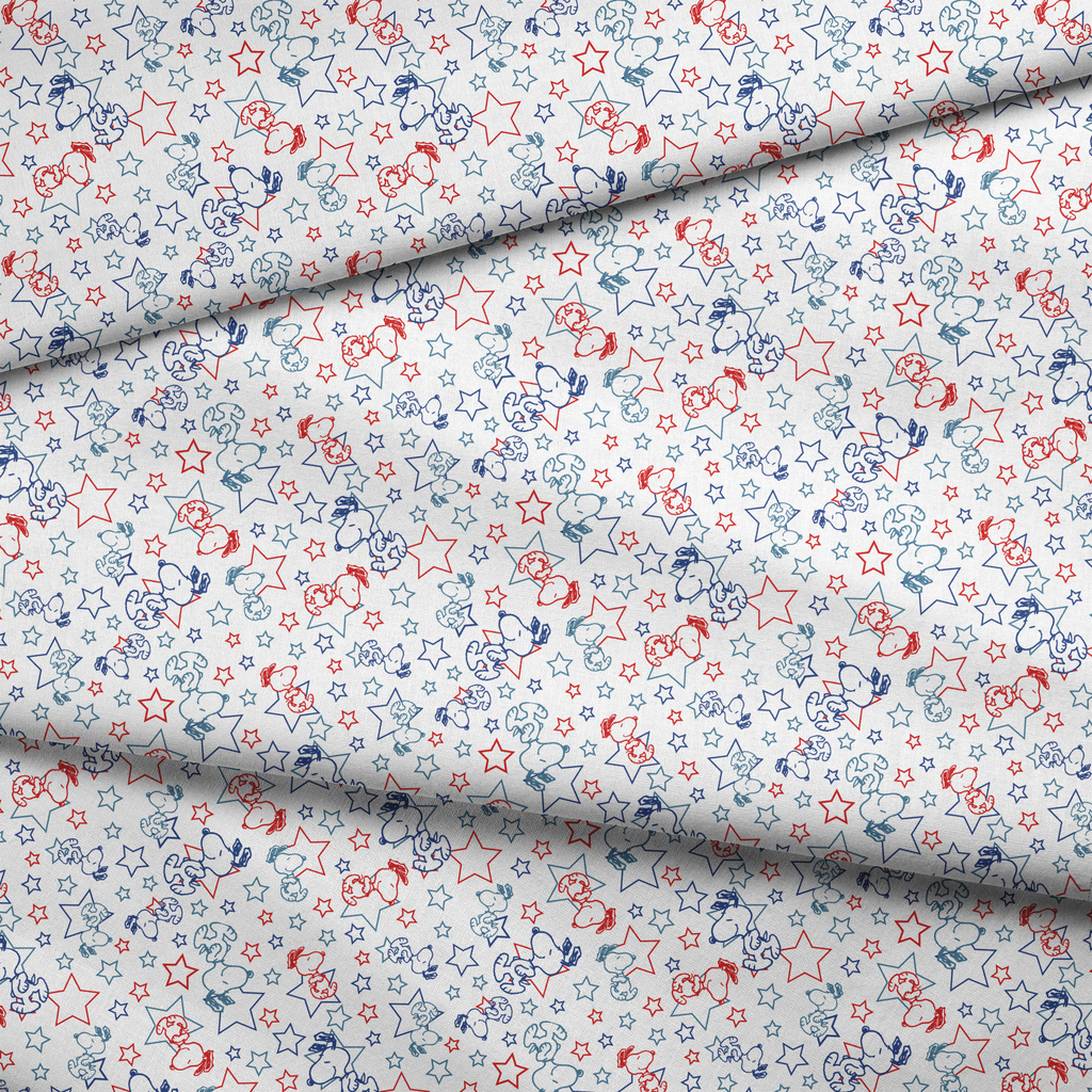 Peanuts Snoopy Stars on White Fabric