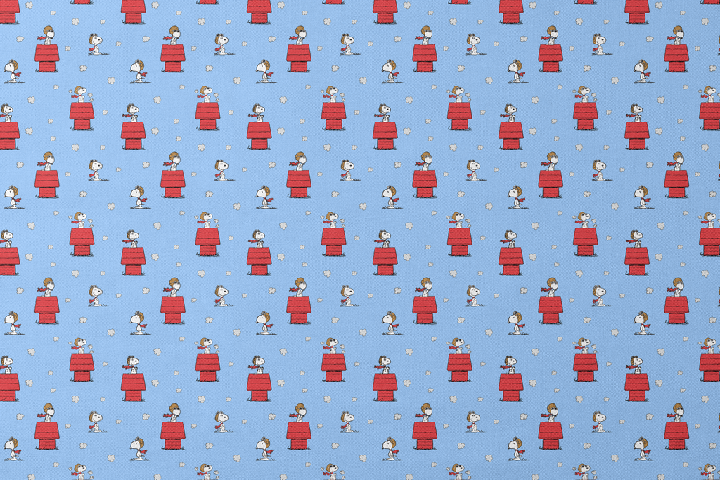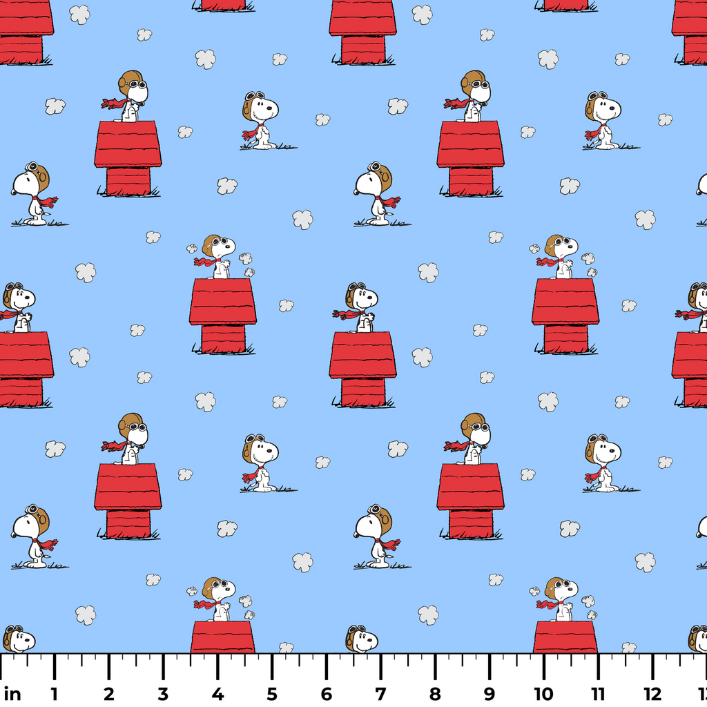 Peanuts Snoopy "The Flying Ace" Doghouse on Blue Fabric