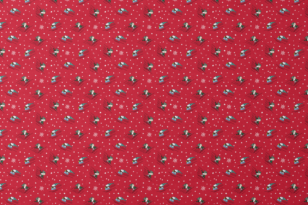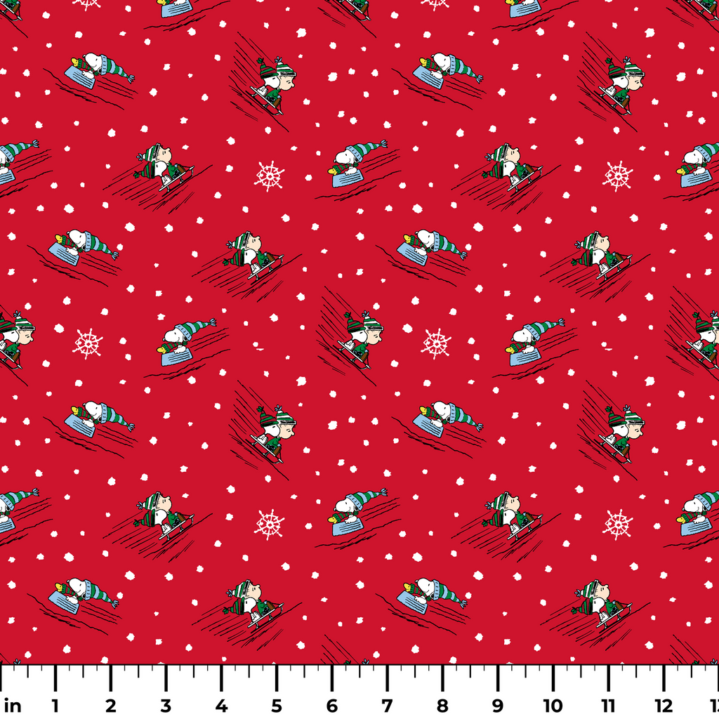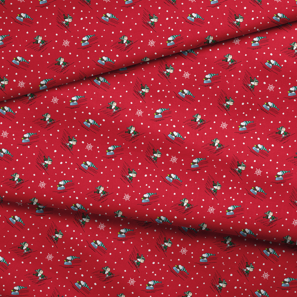 Peanuts Winter Skiing on Red Fabric
