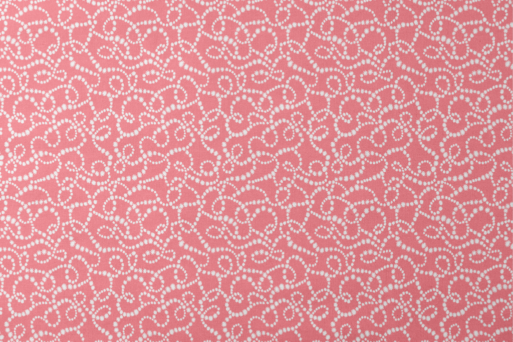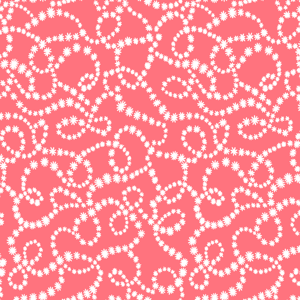 This pretty contemporary pattern features swirling dotted lines creating flowing organic shapes on a vibrant coral background, perfect for home decor or apparel.
