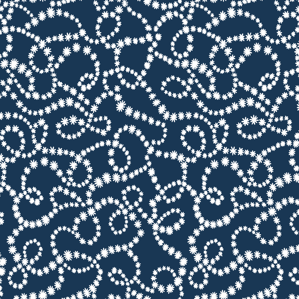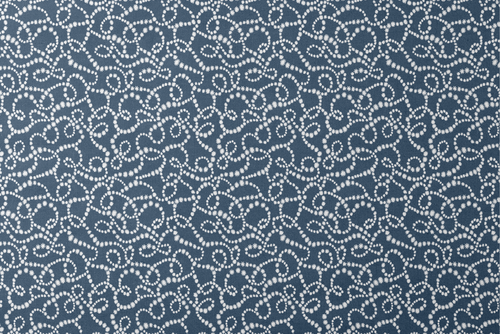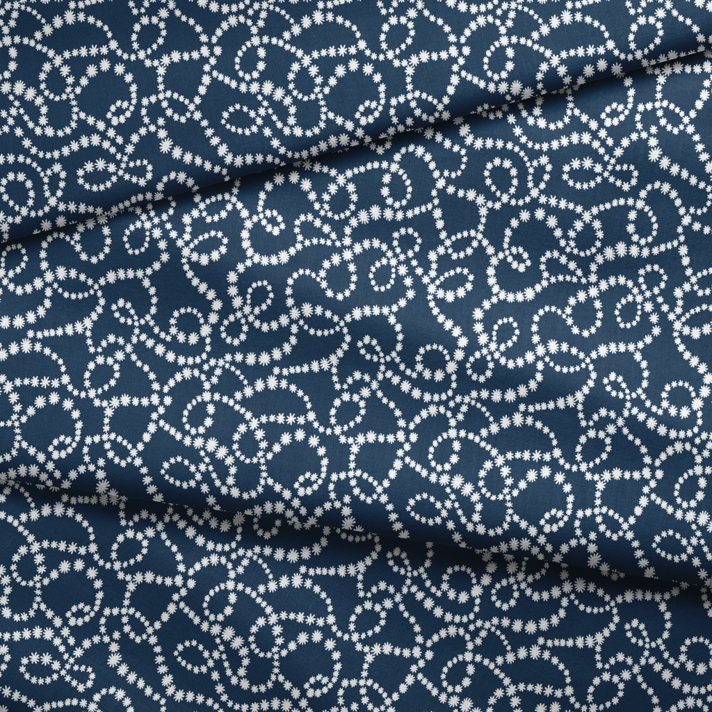 Navy blue and white dotted pattern with swirling, organic curves creates a contemporary yet timeless feel perfect for home decor or upholstery.