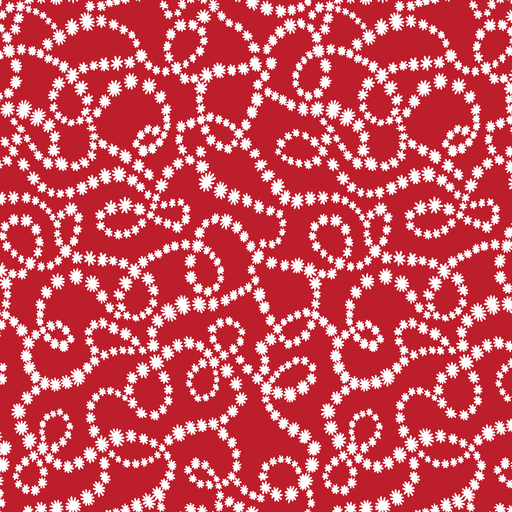 Festive dotted swirl pattern in rich red and white creates a playful contemporary design with flowing lines perfect for holiday decorations or festive home decor.