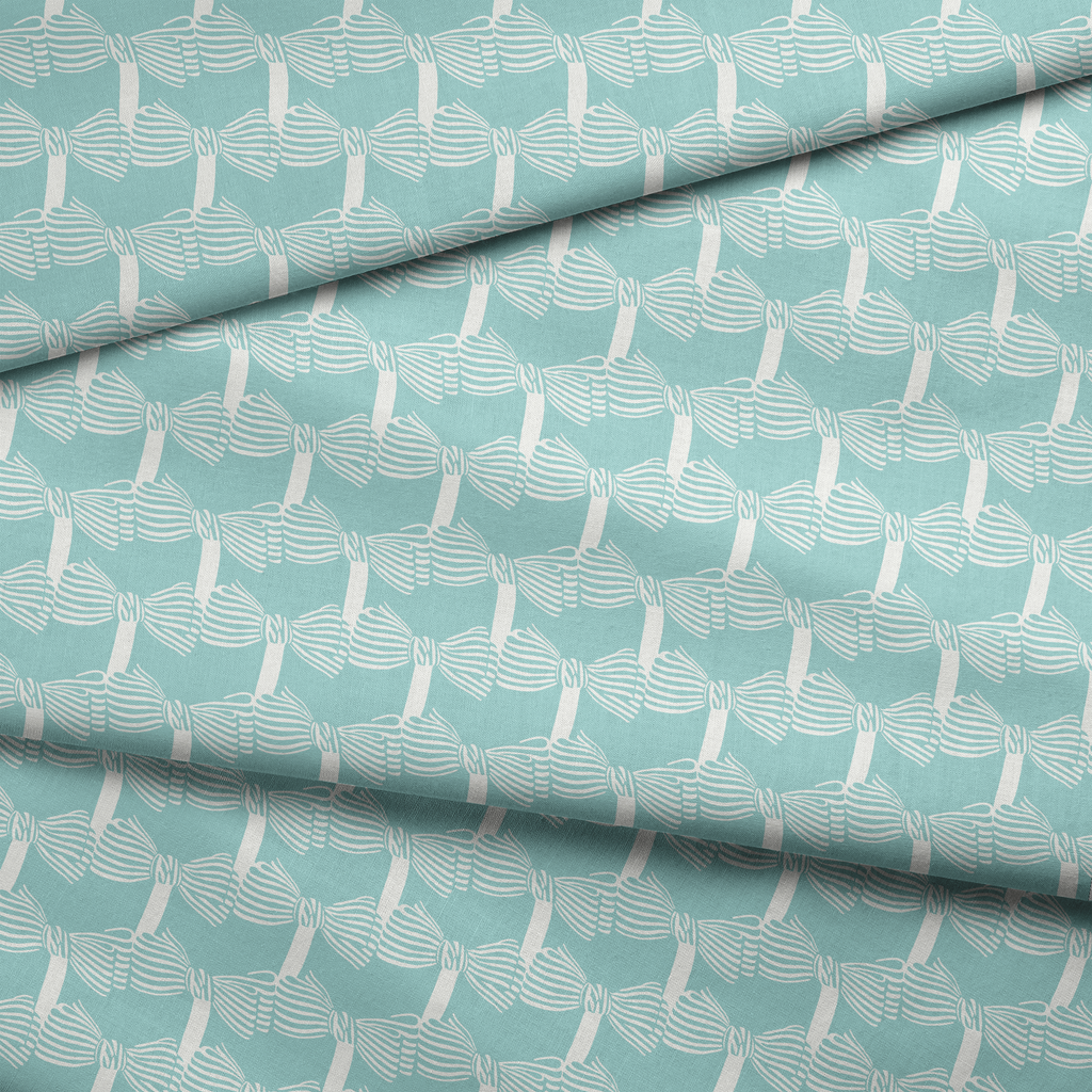 Light blue and white bow pattern with a flowing ribbon design perfect for preppy fashion and contemporary home decor projects.