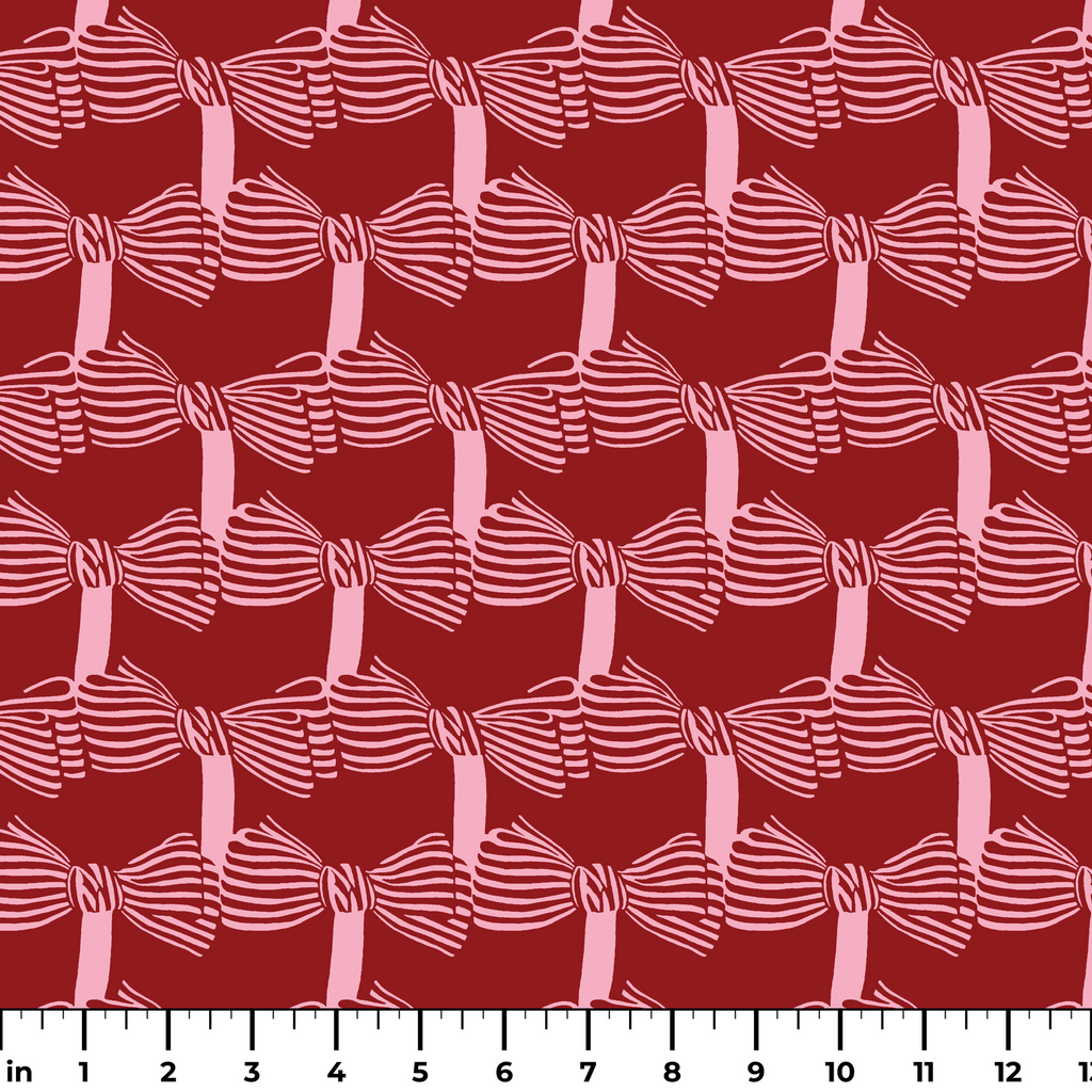 Elegant red and pink striped bow pattern with classic preppy style, perfect for crafting projects and apparel.