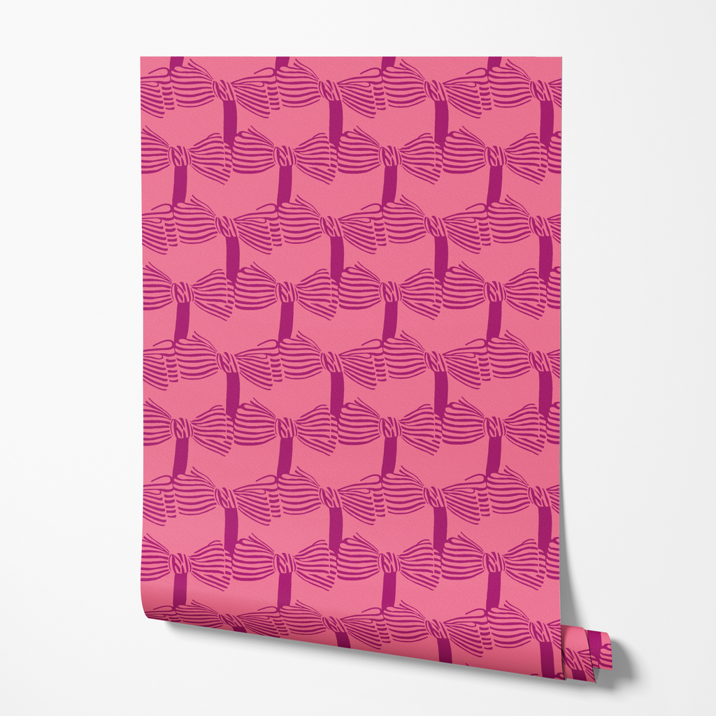 Pink and purple striped bow pattern with retro charm, perfect for a vintage-inspired preppy look for any space.