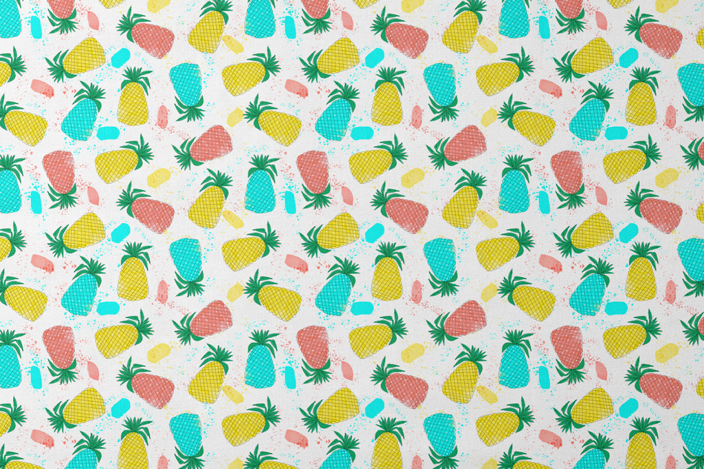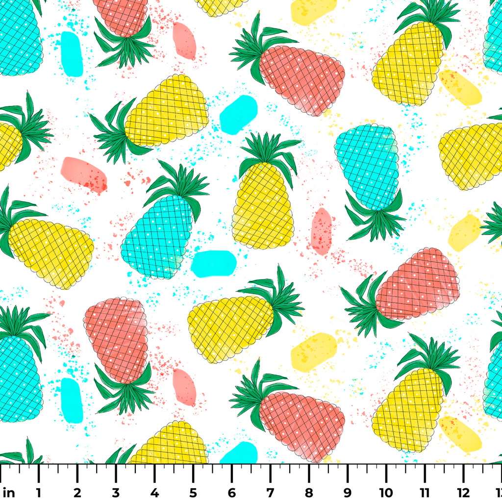Say hello to summer with this quirky pineapple print! Bursting with watercolor splashes and fruity hues of red, blue, and yellow, this fun design brings tropical vibes to any project. Whether you're sewing totes, pillows, or sundresses, this one's here to party.
