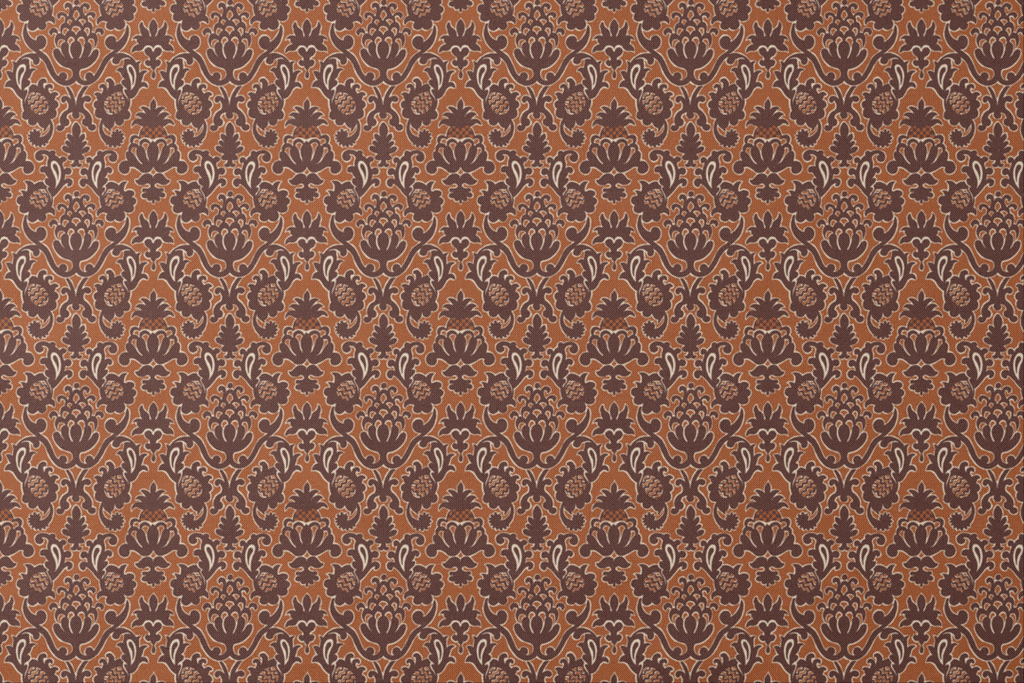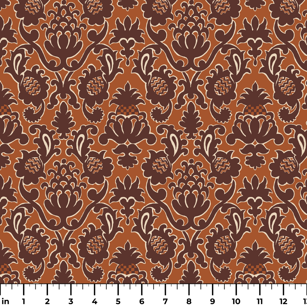 Elegant damask pattern in soft brown with floral motifs and ornate scrollwork, perfect for traditional and seasonal home decor and crafting projects.