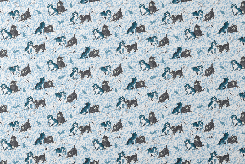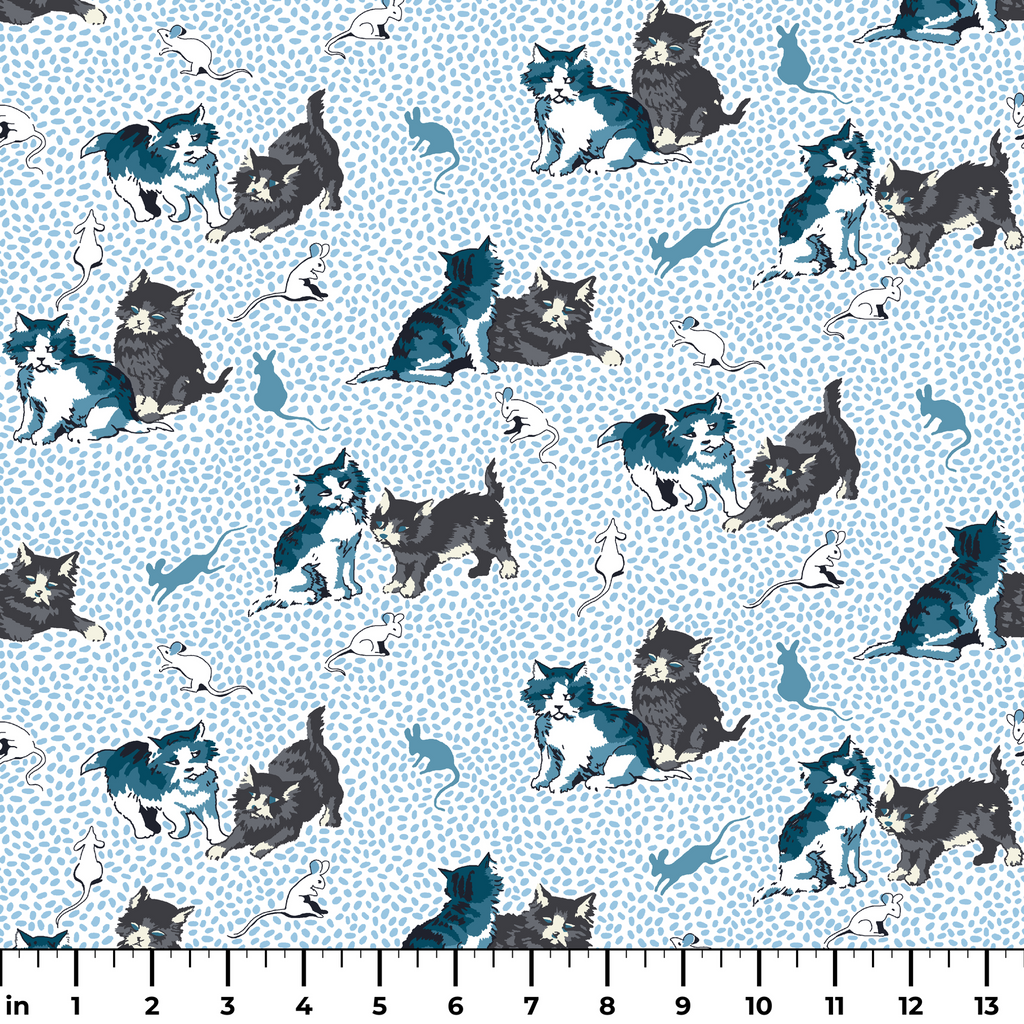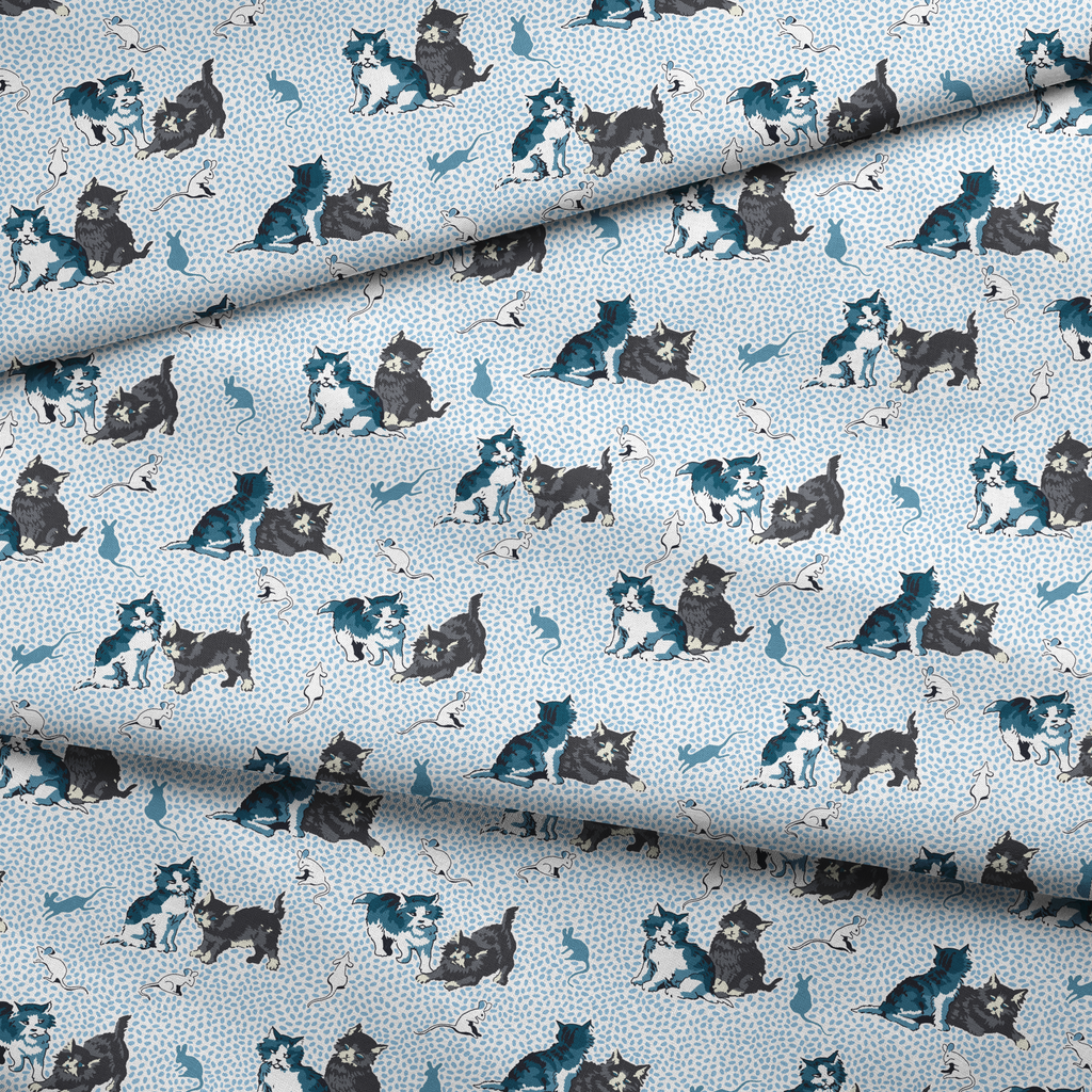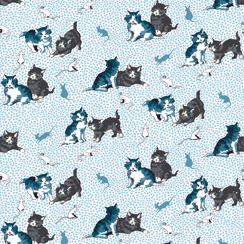 Adorable cats in blue and gray tones create a charming cat-themed pattern perfect for feline-themed crafting projects.