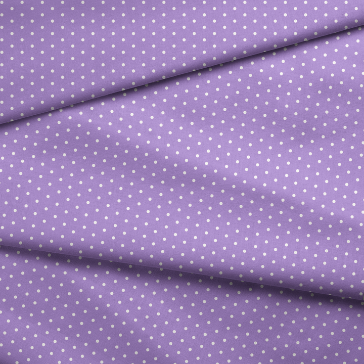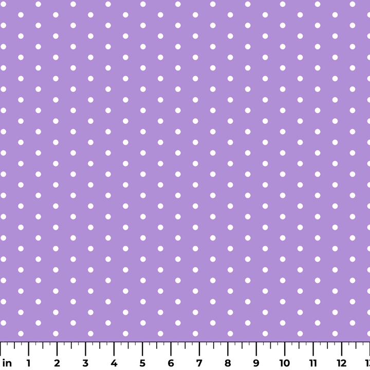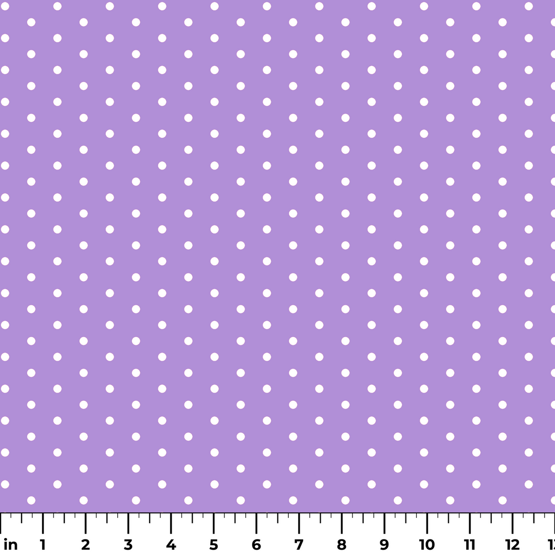 Elegant lavender background with white minimalist polka dots. The contemporary design features geometric shapes in a sophisticated color palette ideal for sewing modern home decor or nursery apparel.