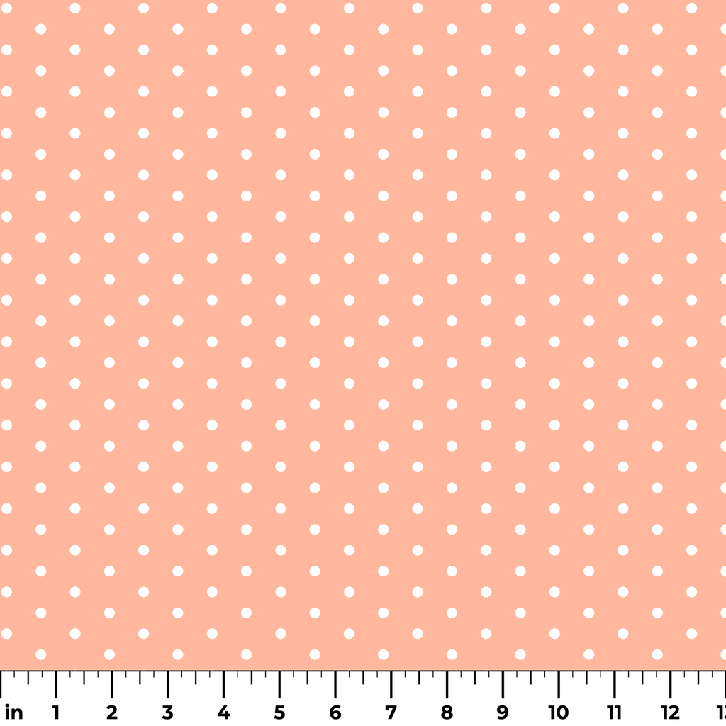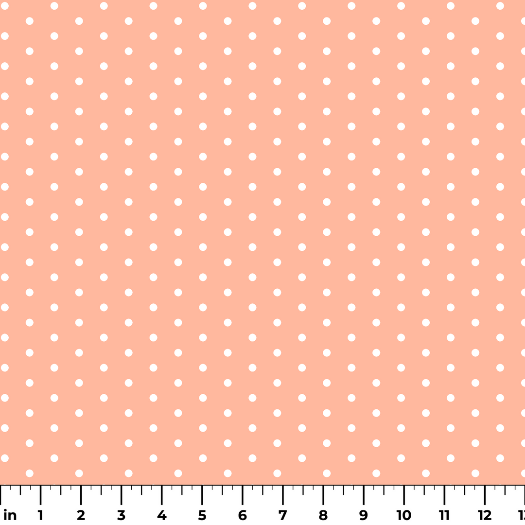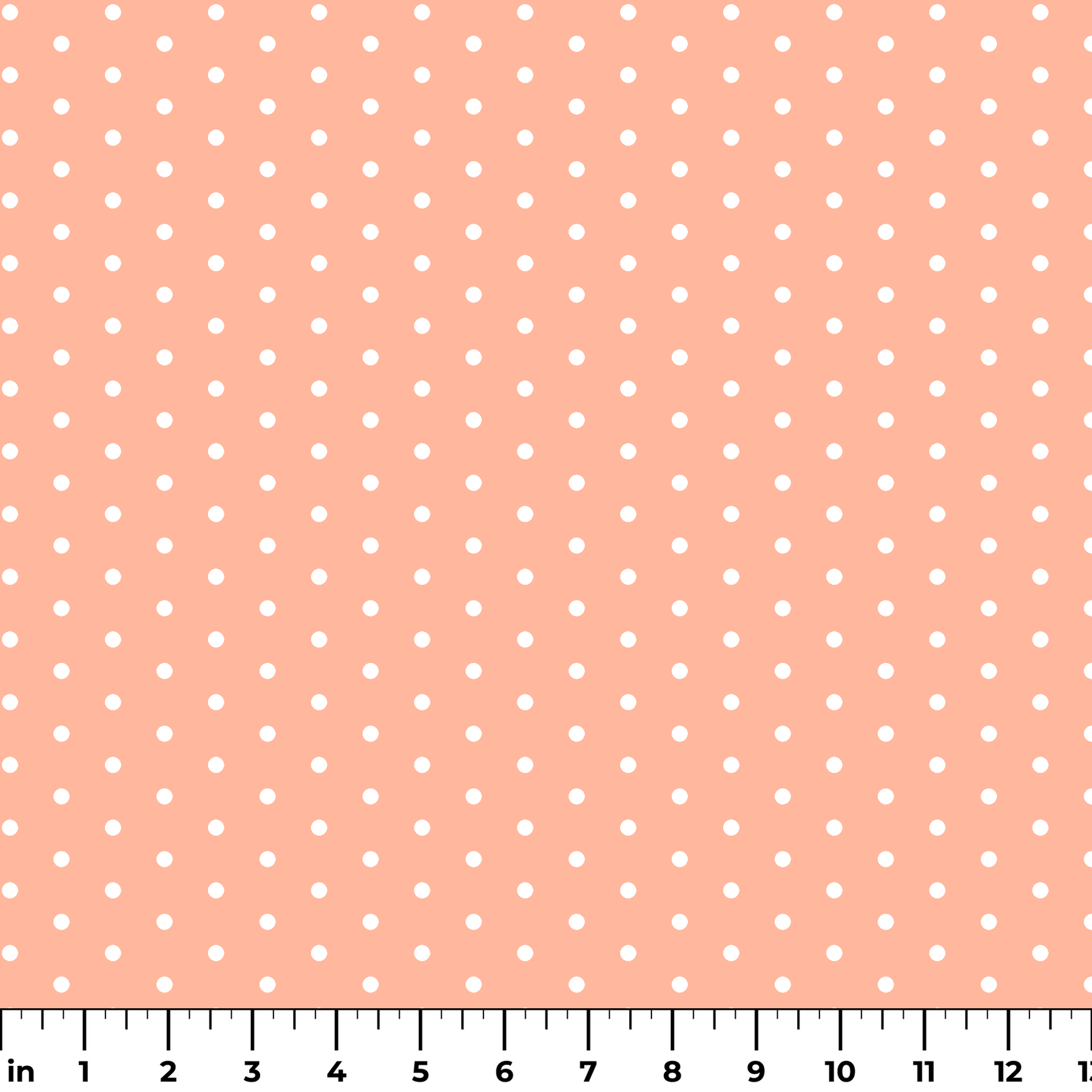 Elegant peach background with white minimalist polka dots. The contemporary design features geometric shapes in a sophisticated color palette ideal for sewing modern home decor or nursery apparel.