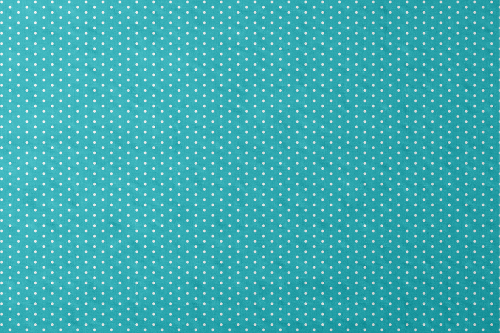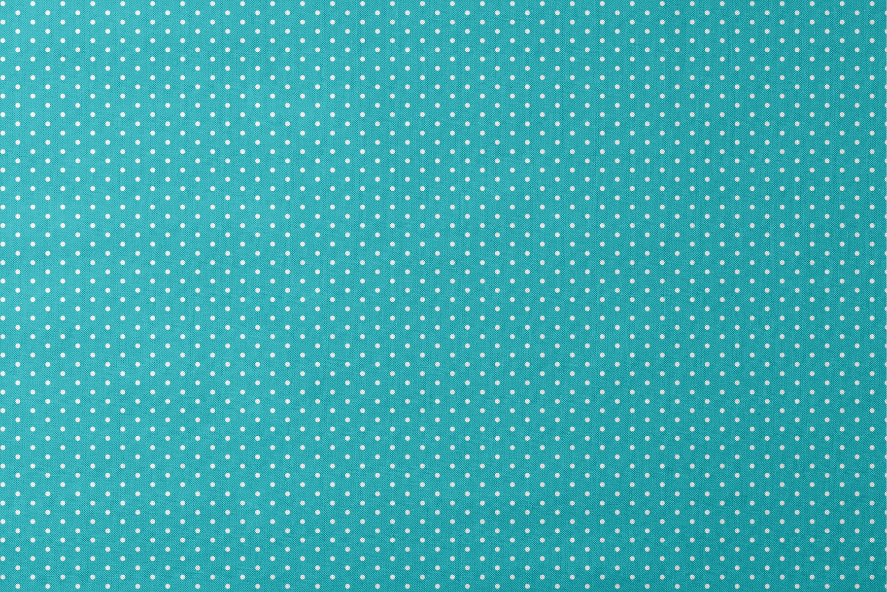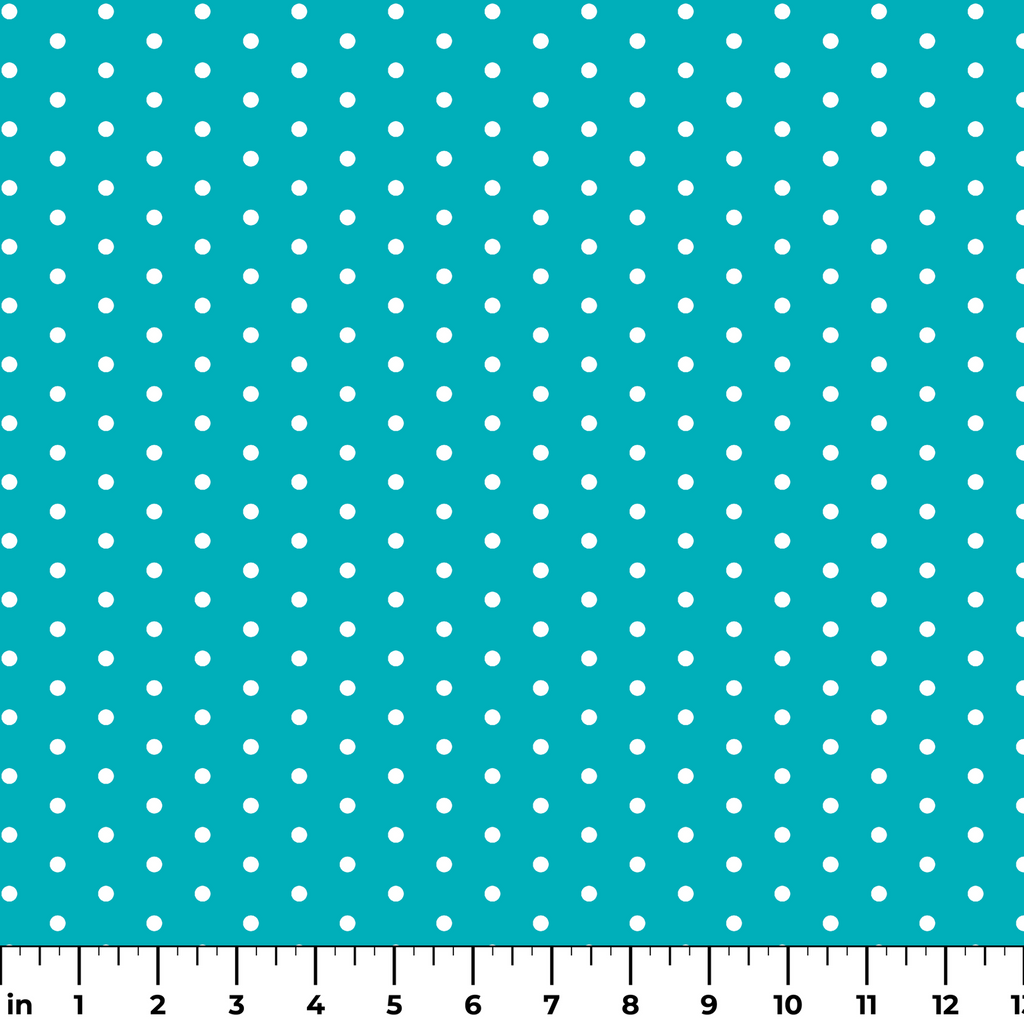 Vibrant turquoise background with white minimalist polka dots. The contemporary design features geometric shapes in a sophisticated color palette ideal for sewing modern home decor or nursery apparel.