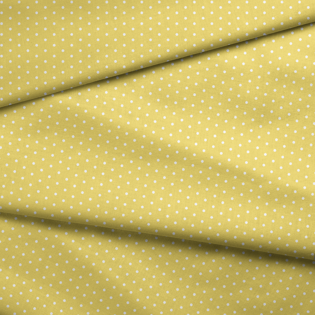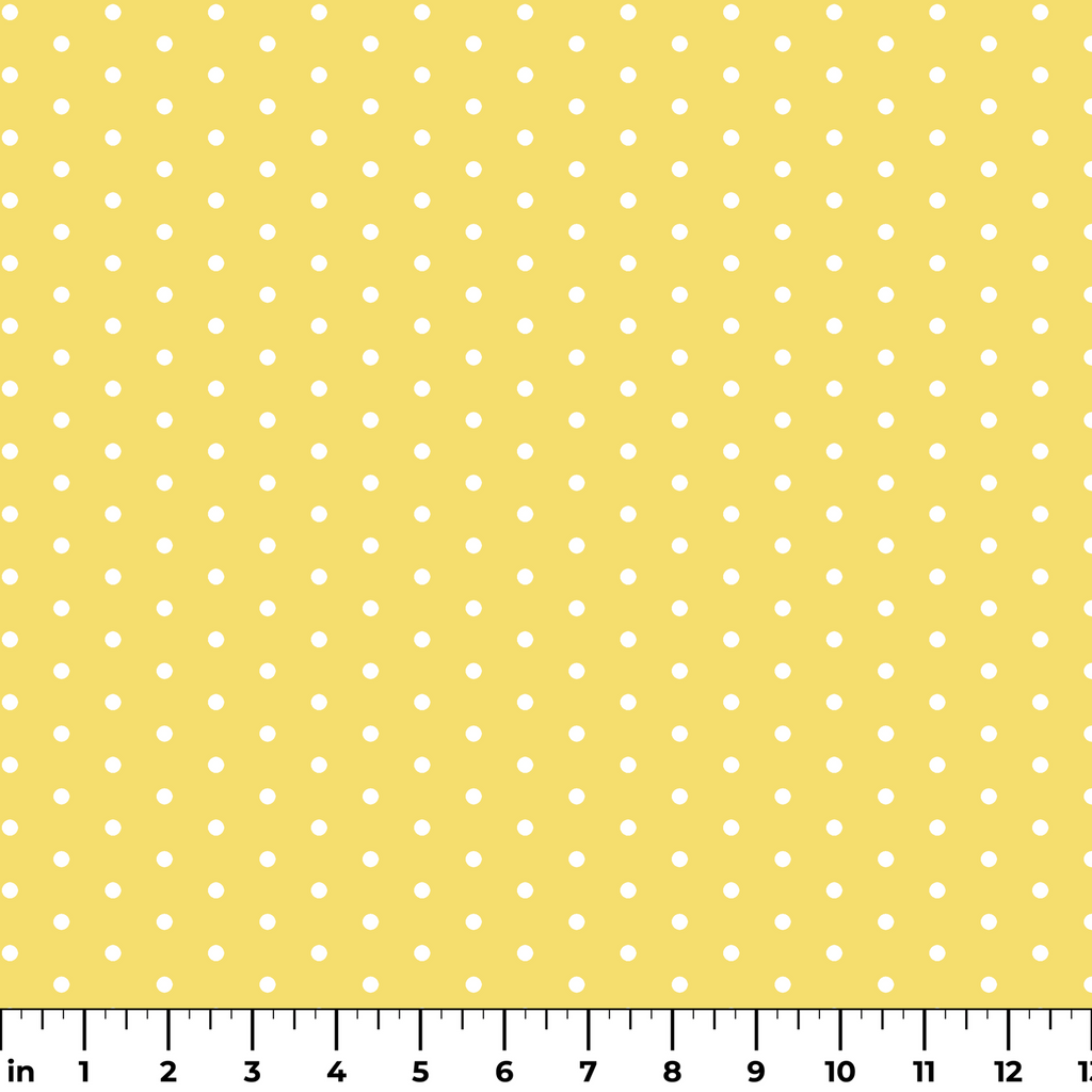 Elegant yellow background with white minimalist polka dots. The contemporary design features geometric shapes in a sophisticated color palette ideal for sewing modern home decor or nursery apparel.
