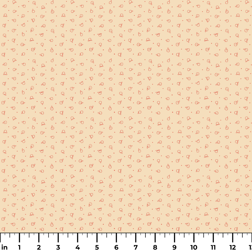 Raggedy Ann and Andy delicate, red-colored apples scattered on a cream background. Perfect for nursery or home decor.