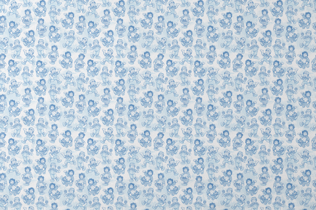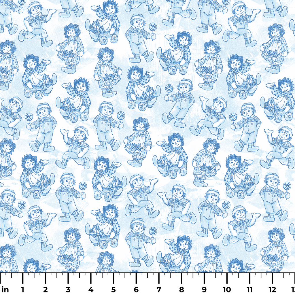 Raggedy Ann and Andy Character Poses Blue Fabric