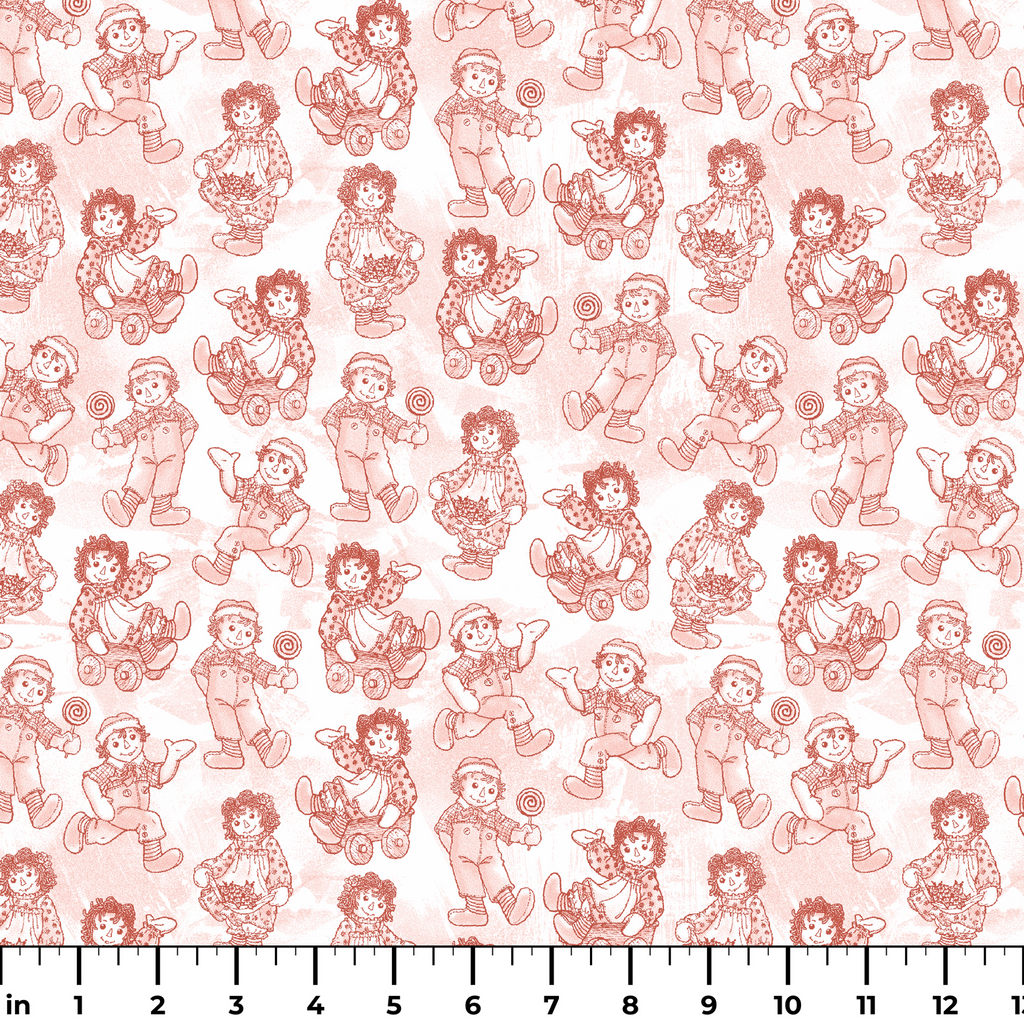 Raggedy Ann and Andy Character Poses Red Fabric