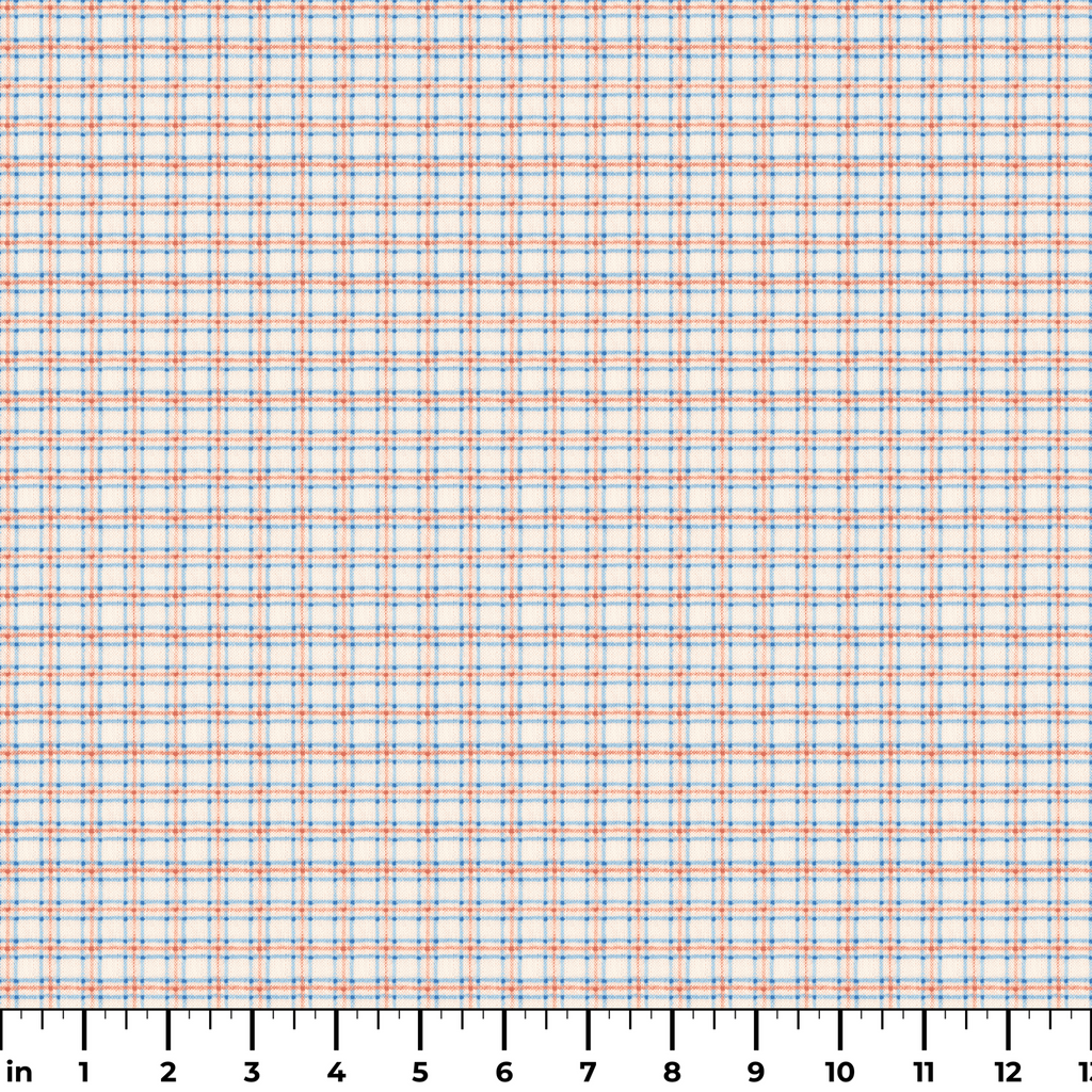 This Raggedy Ann and Andy cozy plaid print features a cream base with rustic blue and subtle deep red lines. Perfect for traditional home decor, cozy blankets, or vintage-inspired fashion.