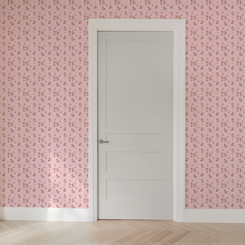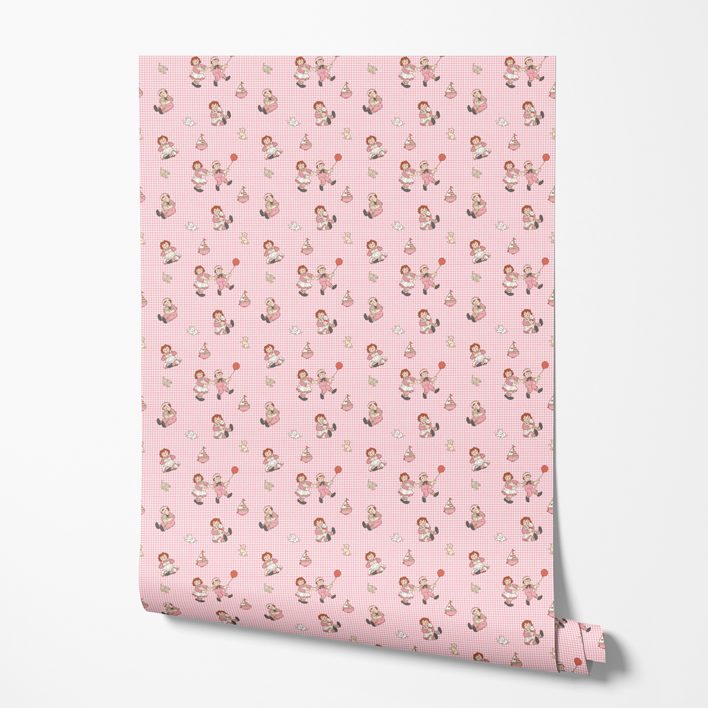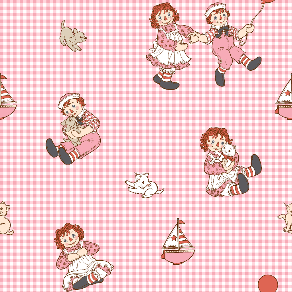 Raggedy Ann and Andy Plaid Toss Pink Wallpaper
