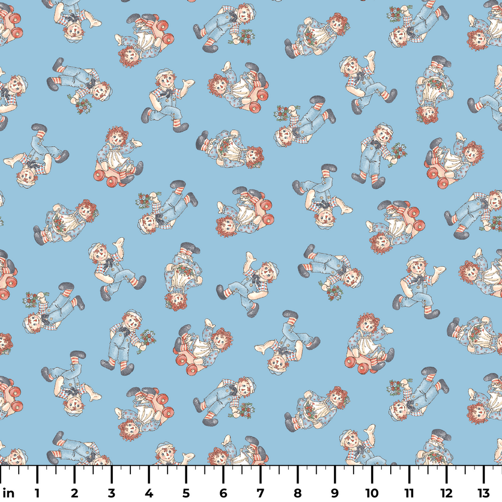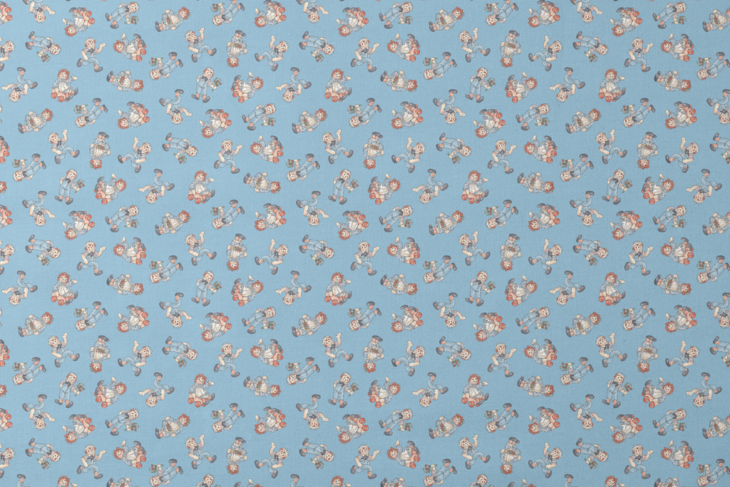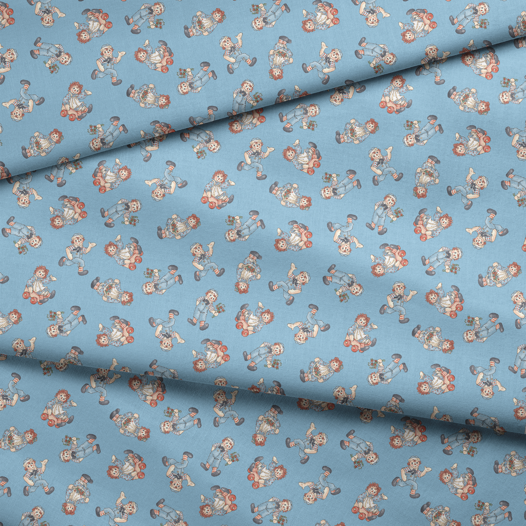 Raggedy Ann and Andy Toss Light Blue Fabric