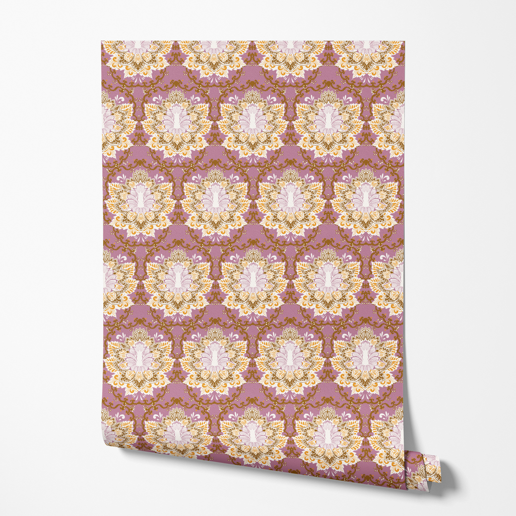 Refined Damask on Purple Wallpaper