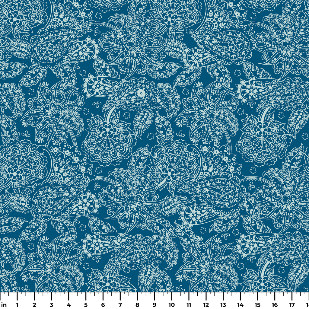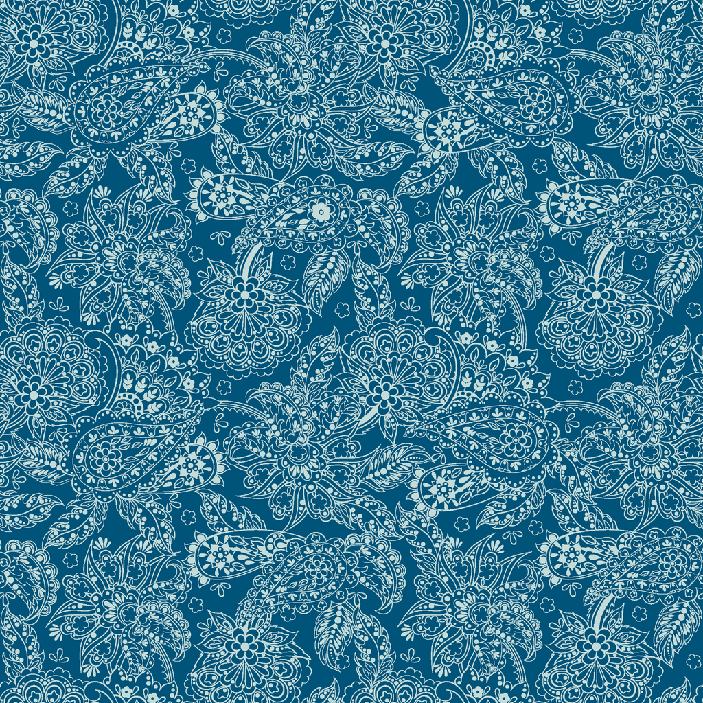 Rich blue paisley pattern with traditional swirls and organic forms. Classic heritage design perfect for home decor or quilting projects for any season.