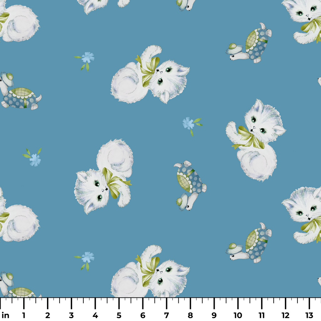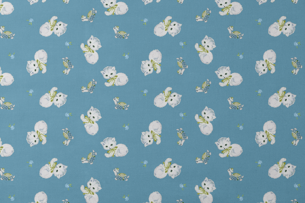 Retro Kittens on Blue Fabric