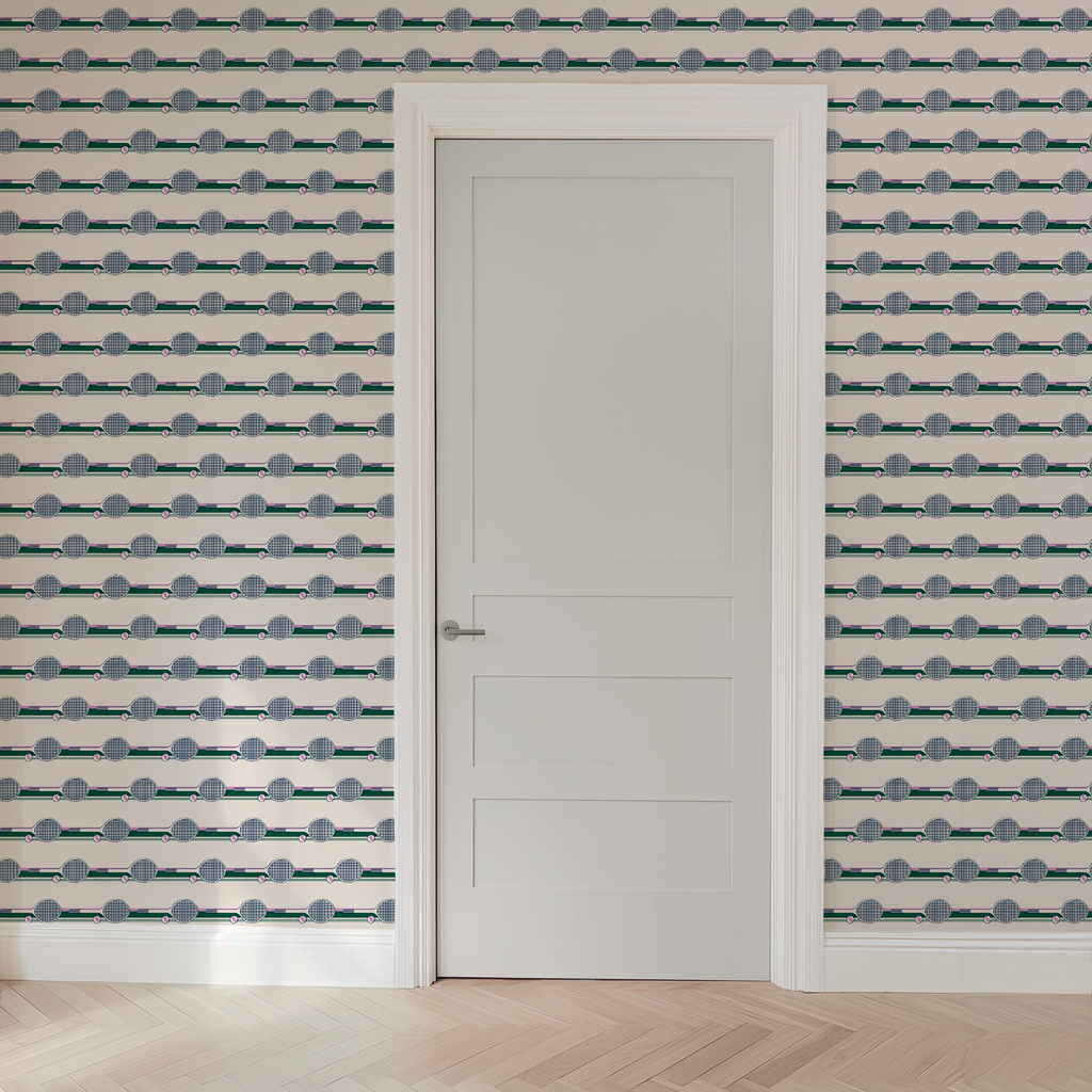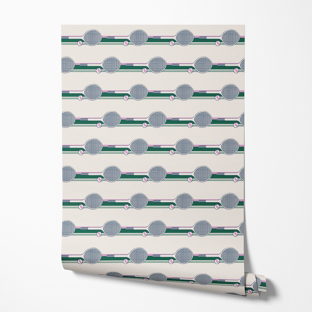Retro Tennis Racquet Stripe in Swing Green Wallpaper