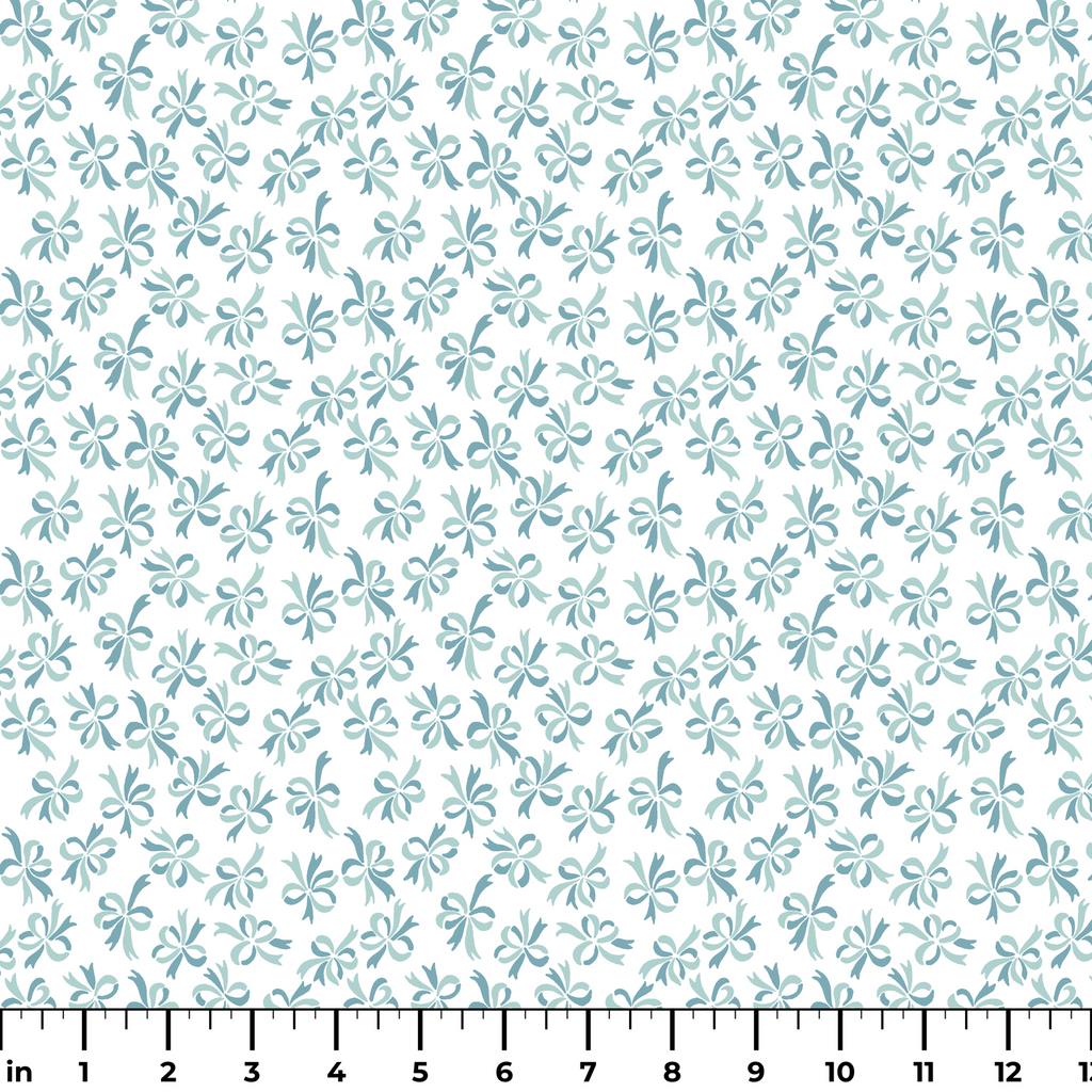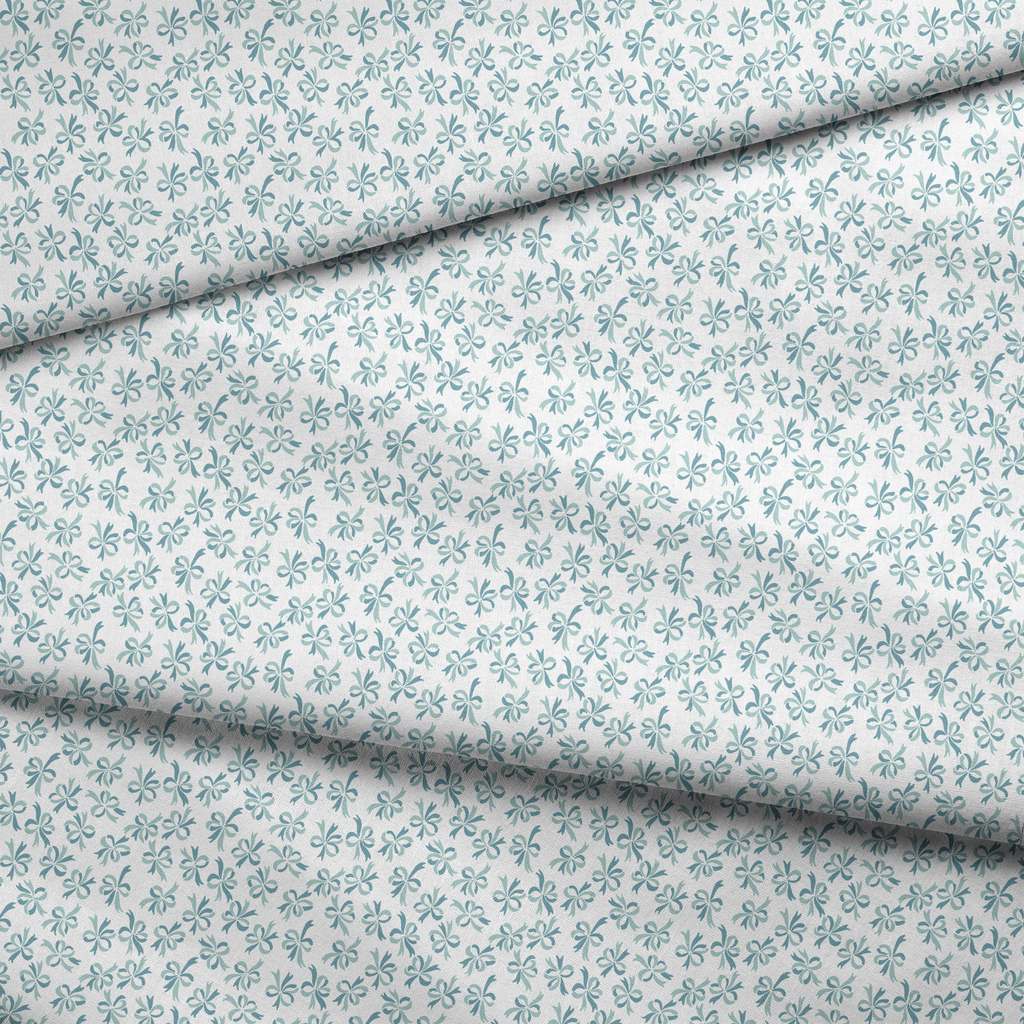 Elegant soft blue bow pattern featuring delicate bow motifs in a whimsical repeating design, perfect for contemporary home decor and apparel.