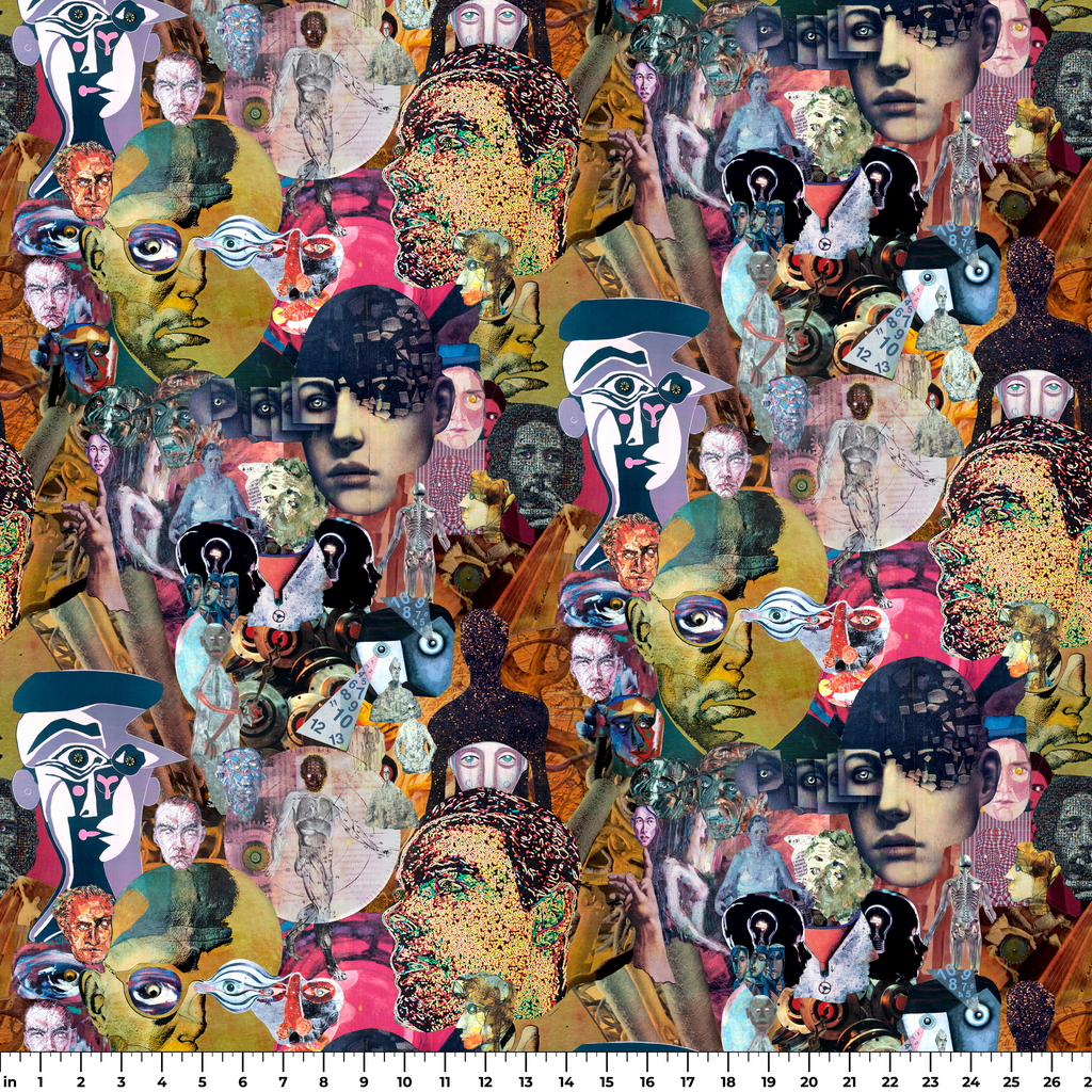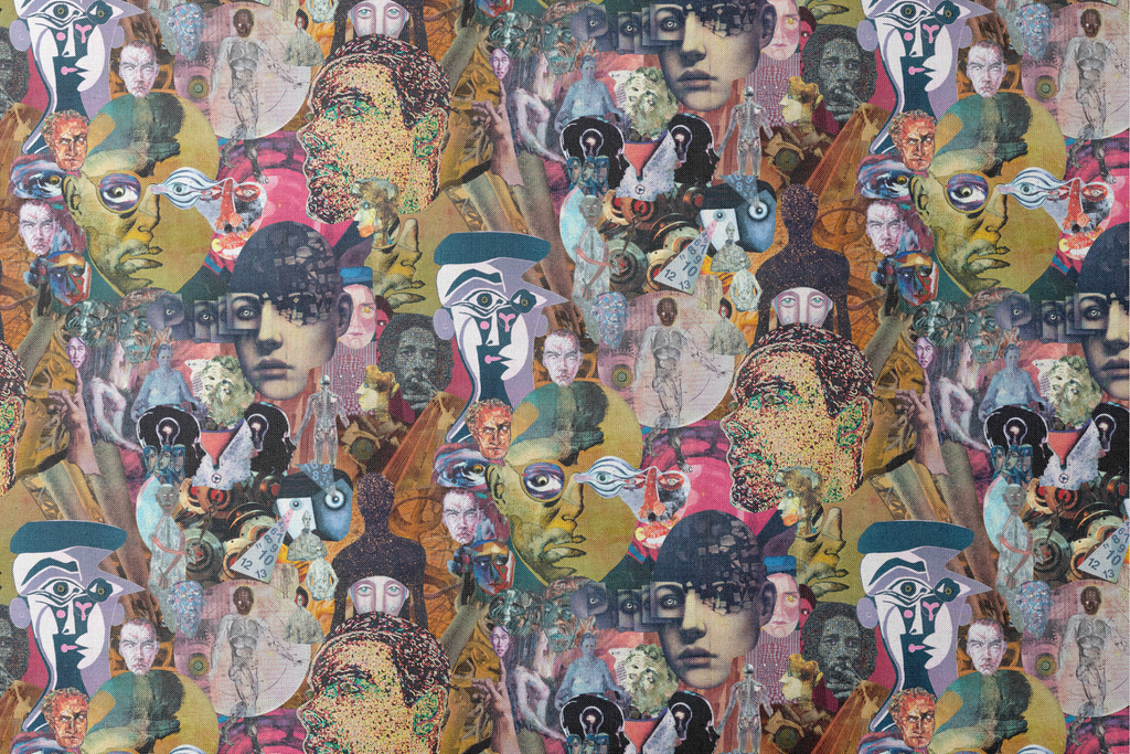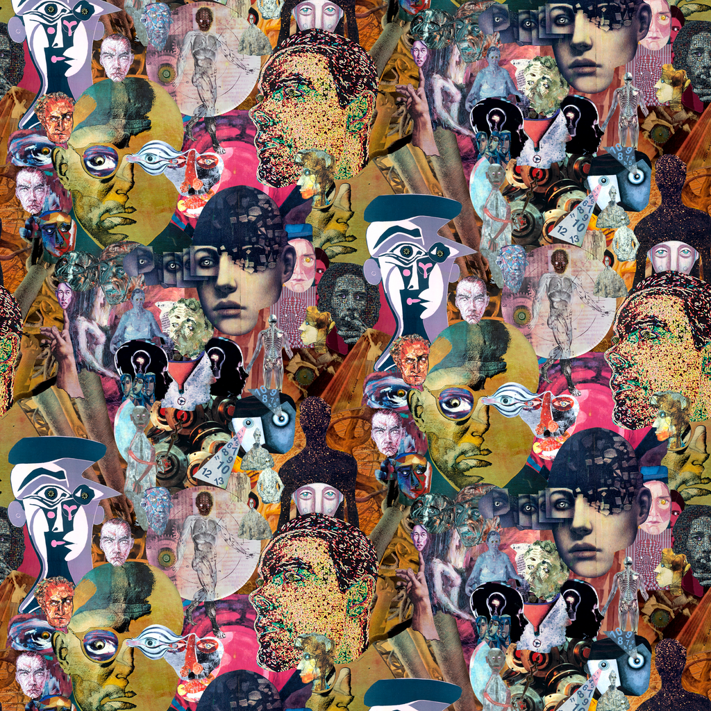 Vibrant collage art featuring diverse abstract faces and bold eyes in a psychedelic, mixed-media style. Bold colors and artistic expressions create a captivating, contemporary portrait montage. Perfect for a vivid touch for crafts and decor.