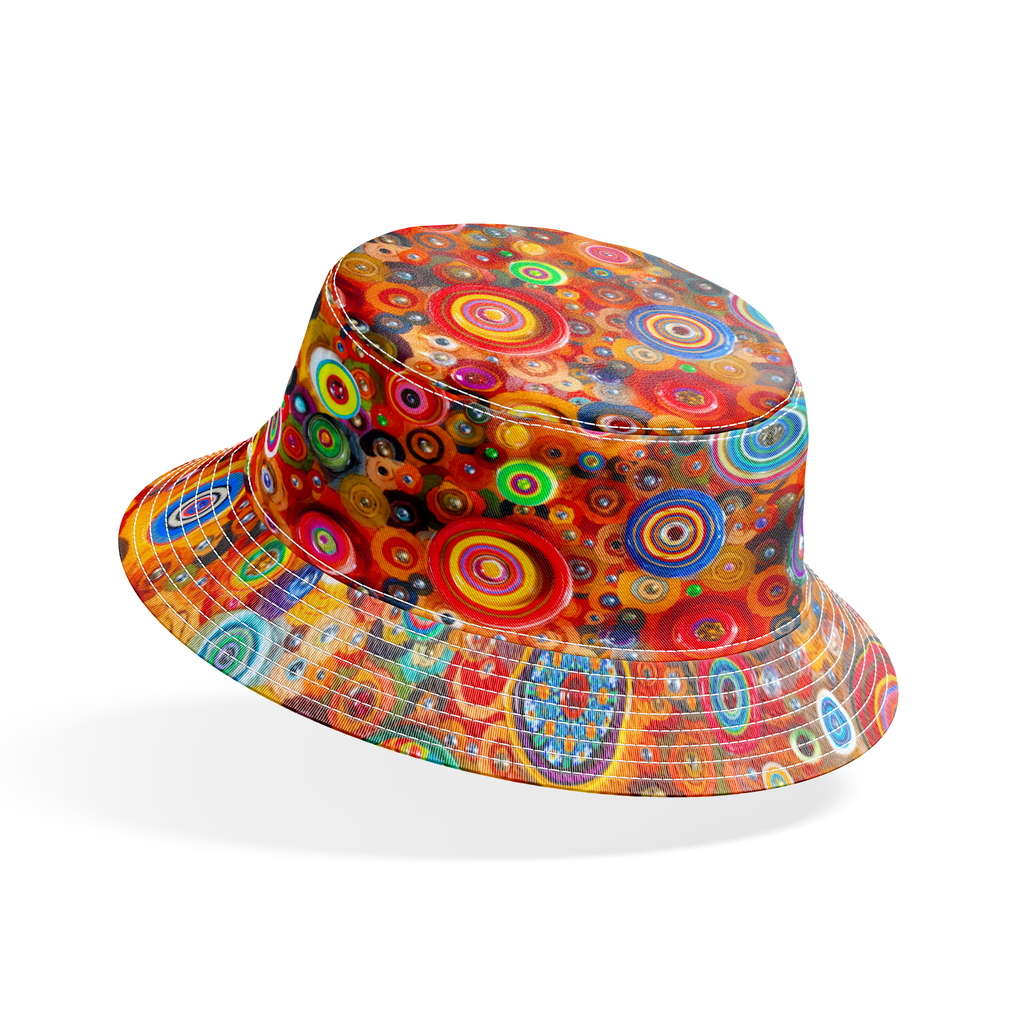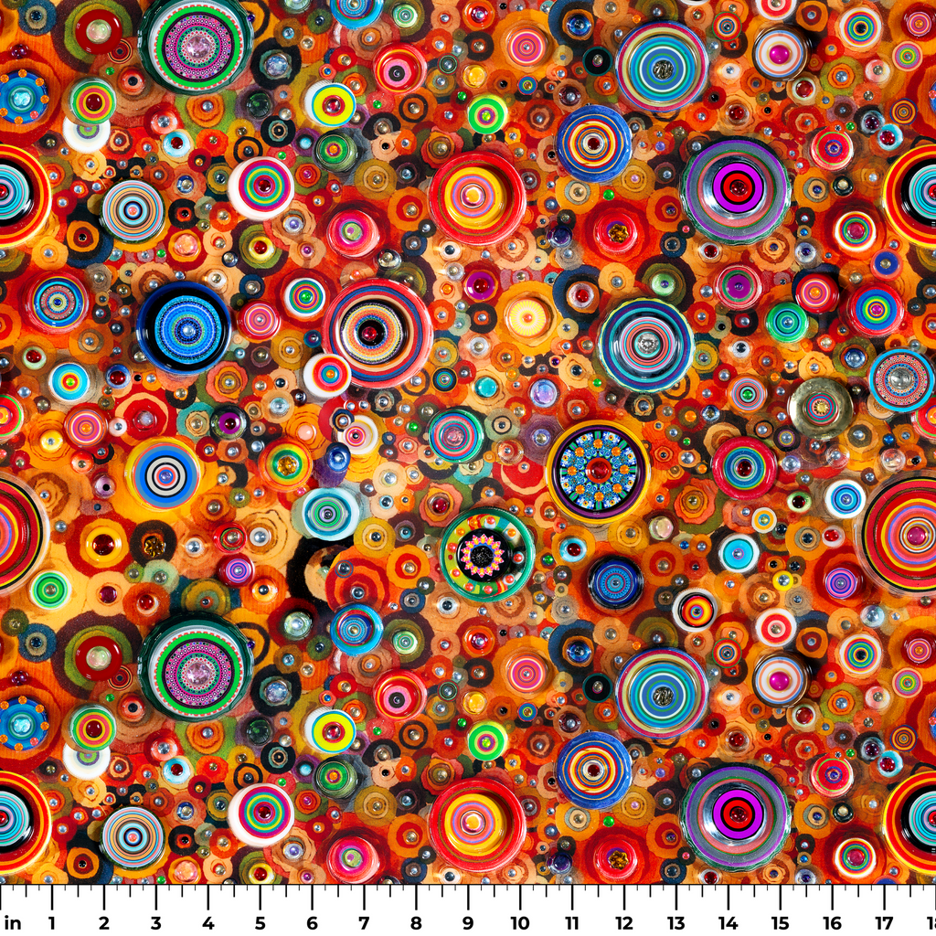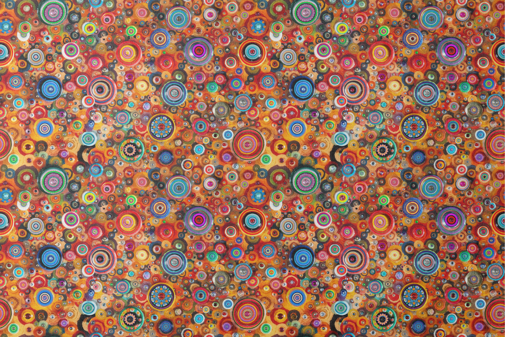 Vibrant concentric circles in a kaleidoscope of colors create a mesmerizing abstract pattern. Bold reds, blues, and oranges form an energetic geometric design perfect for contemporary home decor.