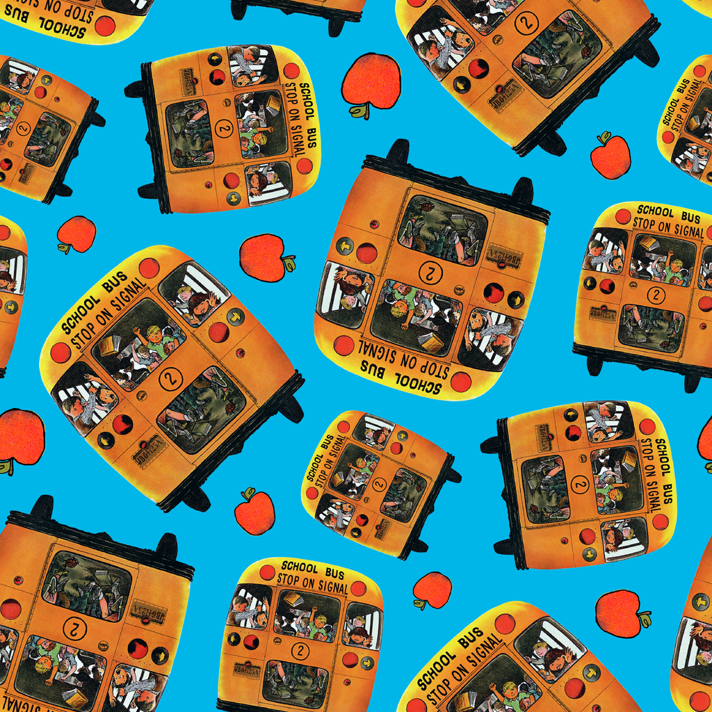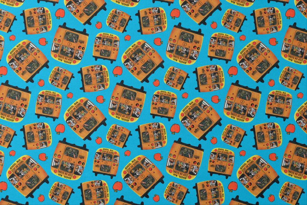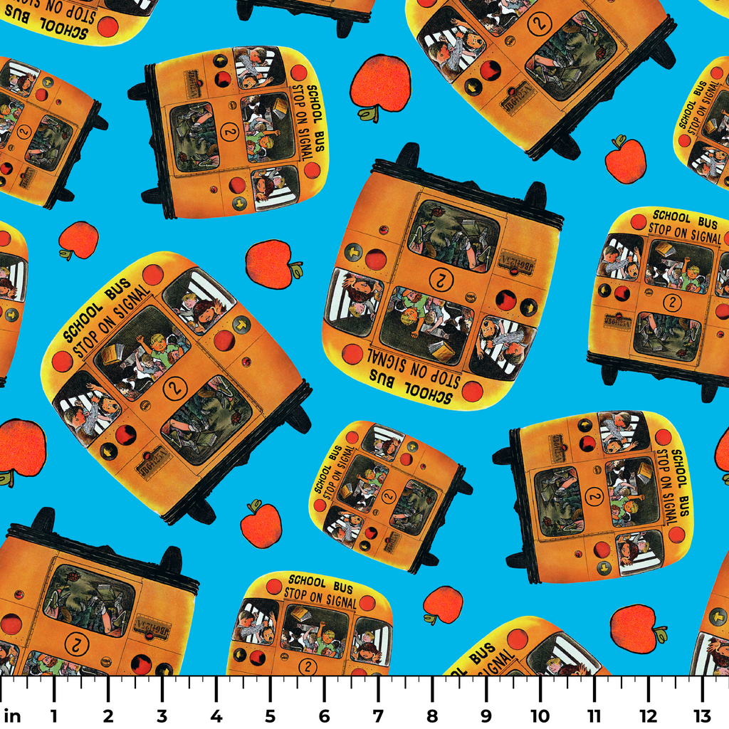 Saturday Evening Post - School Days - Yellow Bus Blue Fabric