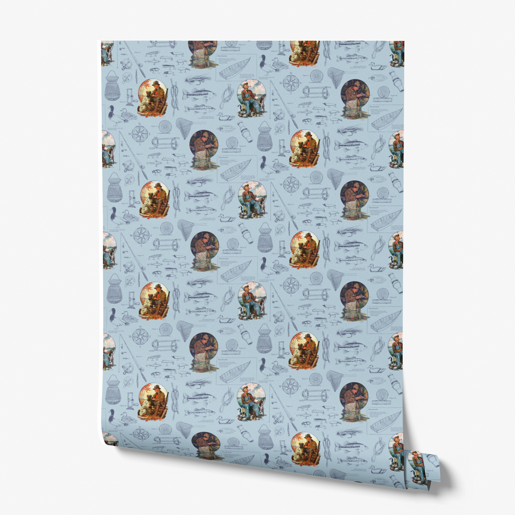 Saturday Evening Post Vintage Fishing and Nautical Pattern Sky Wallpaper
