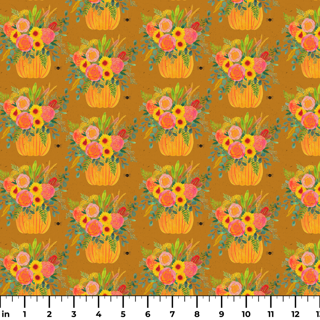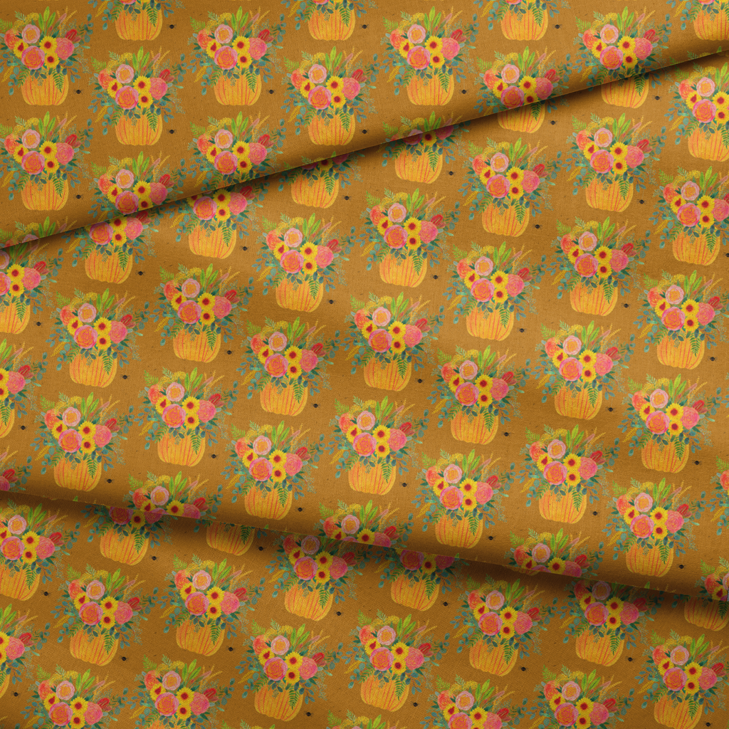 Shannon Snow Autumn Pumpkin Bouquet on Gold Fabric