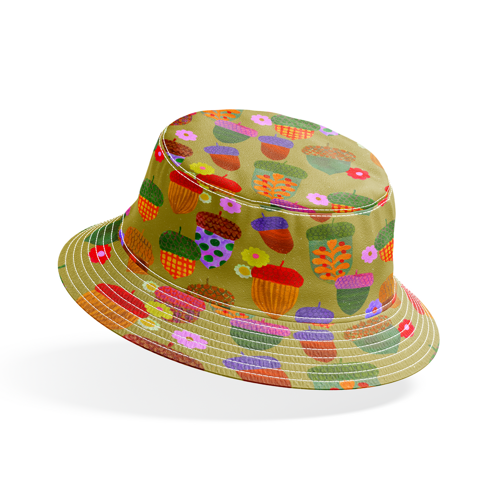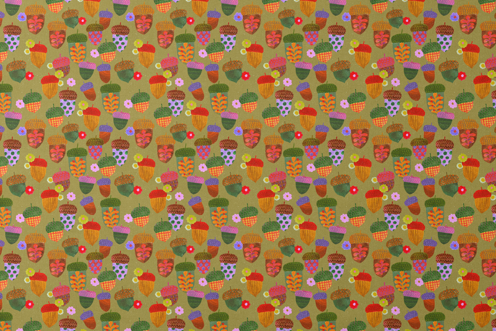 Shannon Snow Colorful Acorns on Green Fabric
