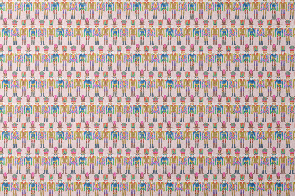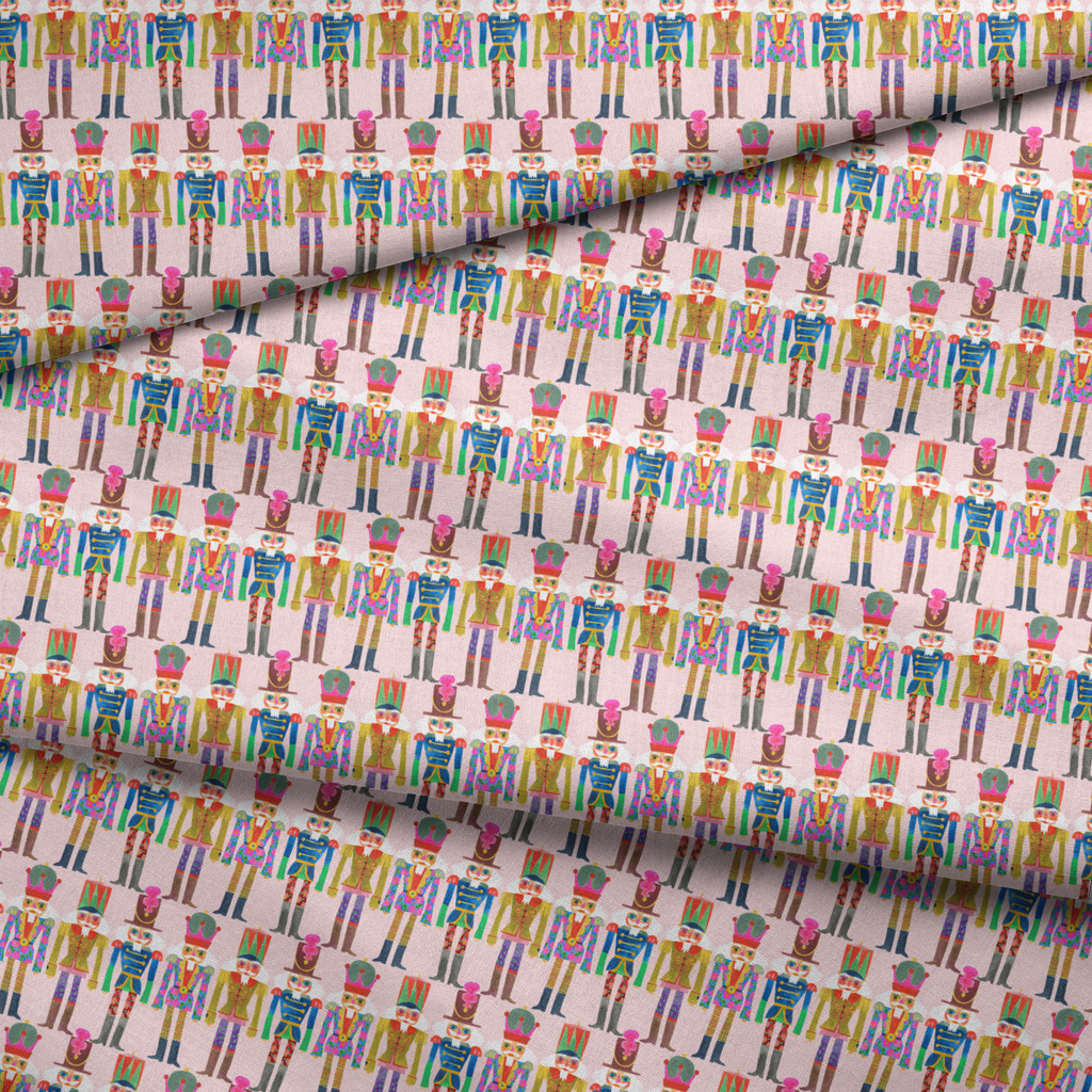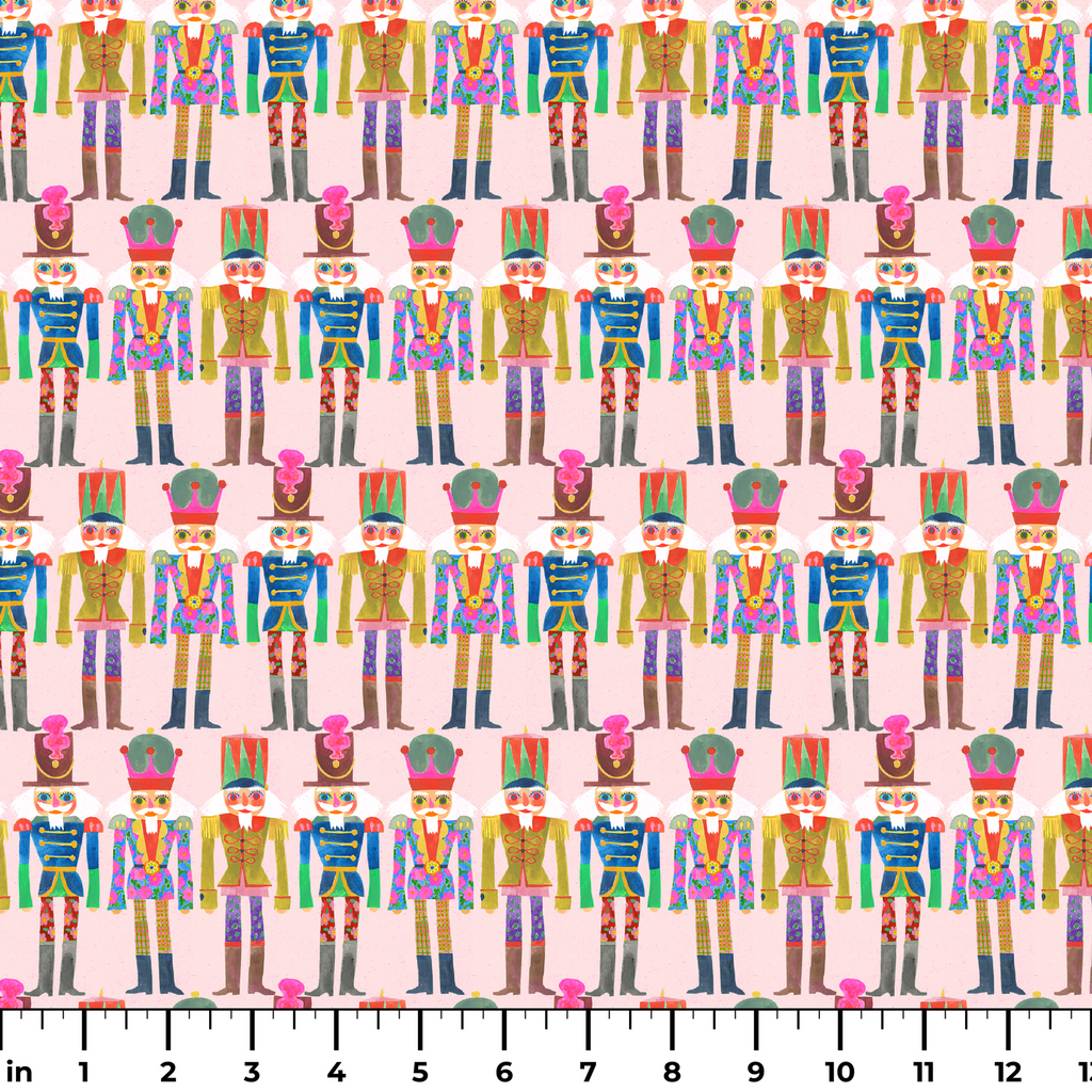 Shannon Snow Colorful Folk Nutcrackers on Pink Fabric