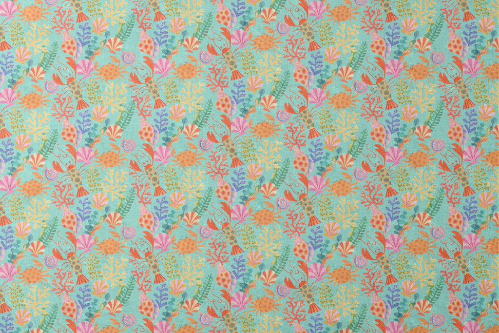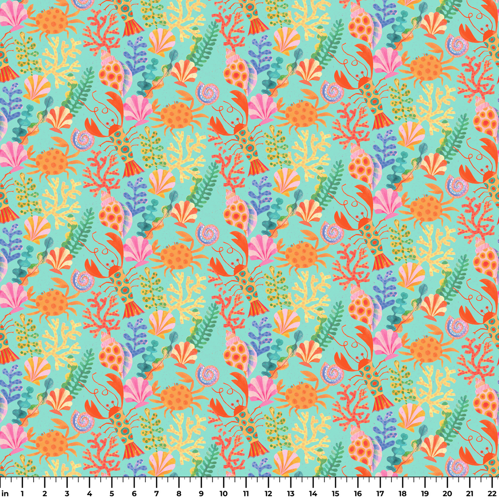 Shannon Snow Underwater Creatures on Turquoise Fabric