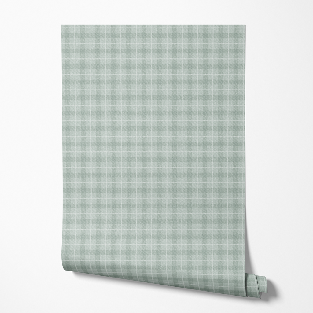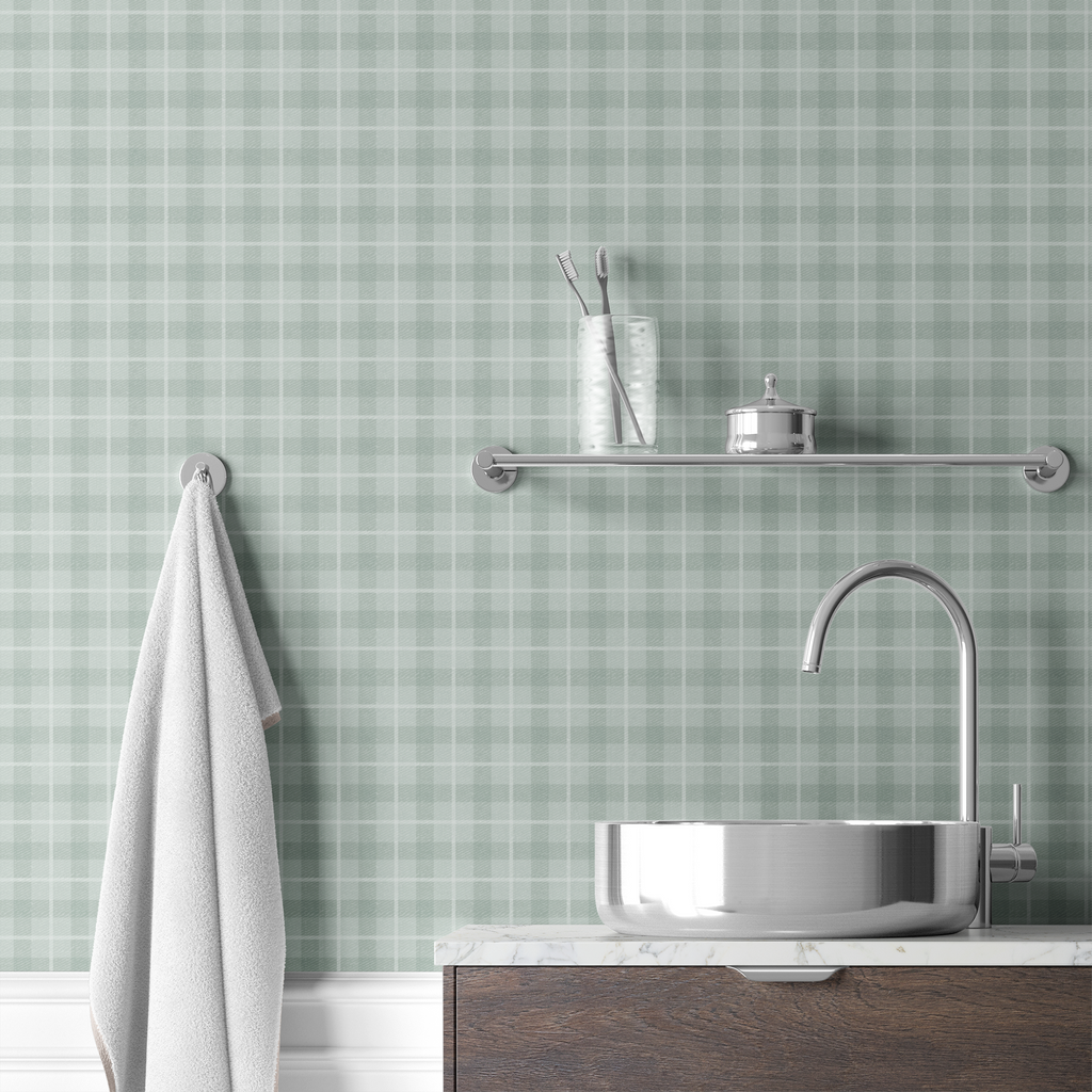 Soft Sage Green Plaid Wallpaper