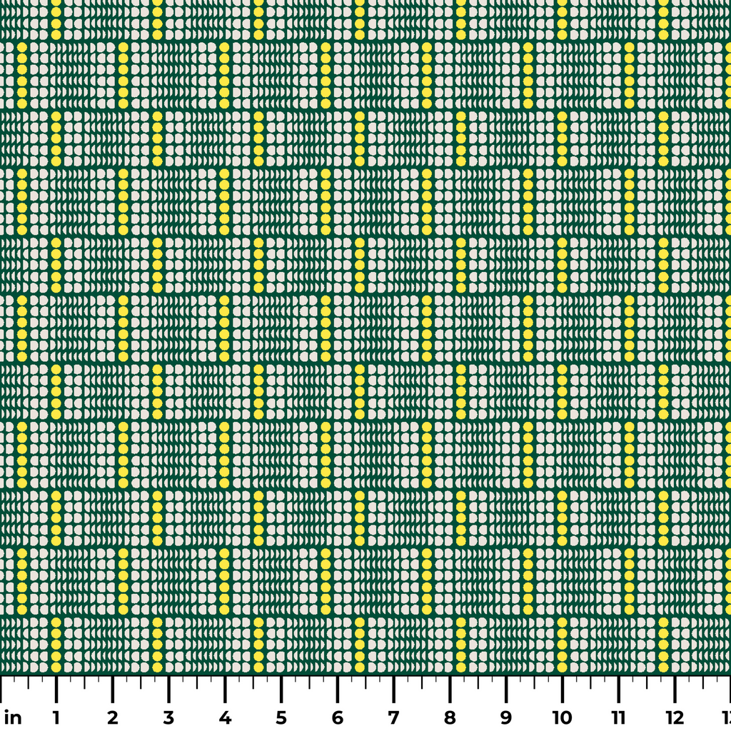 Green and yellow houndstooth check pattern with white grid lines creates a preppy retro plaid design perfect for a classic vibe.