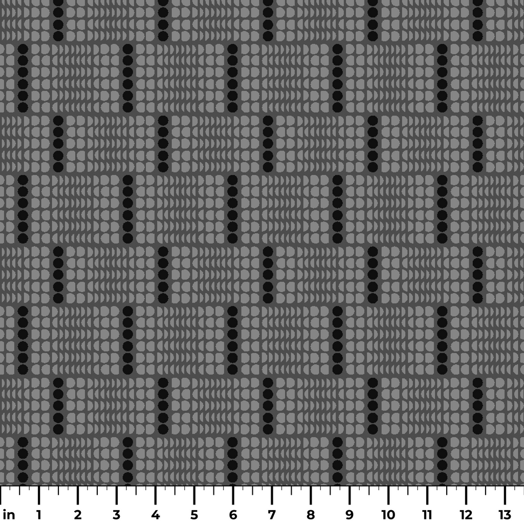 Charcoal gray and black houndstooth check pattern with light gray grid lines creates a preppy retro plaid design perfect for a classic vibe.