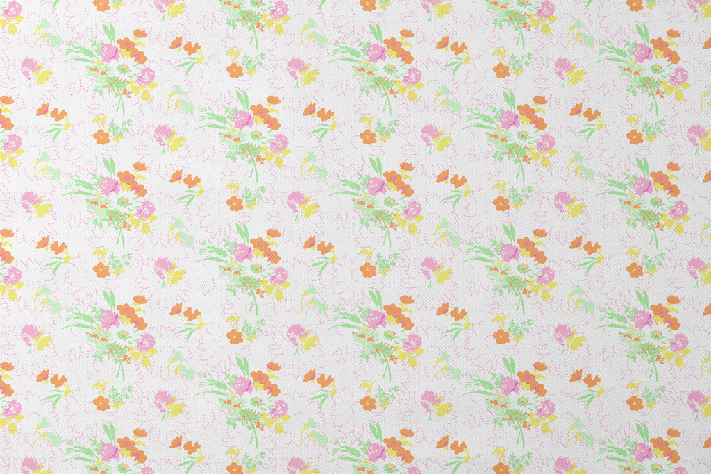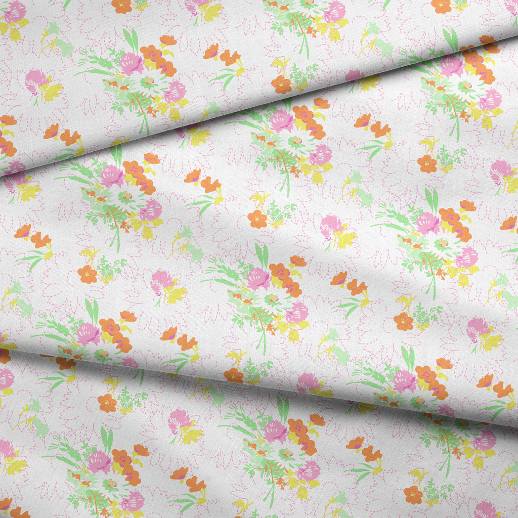 Spring Bouquet on Orange & Pink Fabric