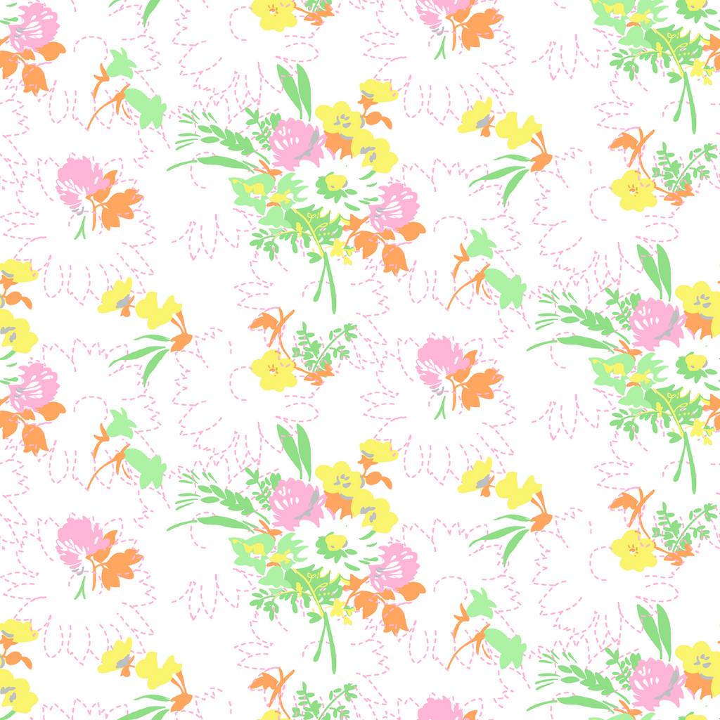 Spring Bouquet on Yellow & Pink Fabric