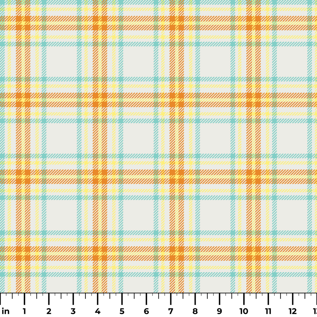 This cheerful plaid fabric features a breezy combination of cream background with intersecting lines in soft blue, sunny yellow, and warm orange. The classic tartan pattern gets a fresh, coastal makeover with these beachy hues that feel both nostalgic and contemporary. Perfect for summer table linens, lightweight tote bags, or playful kitchen accessories that bring a touch of sunshine to your space.