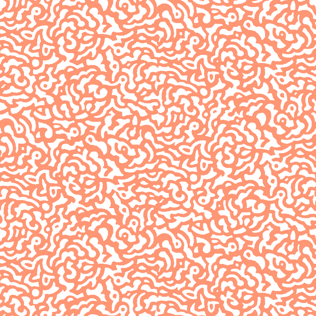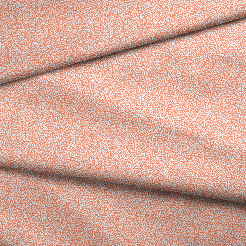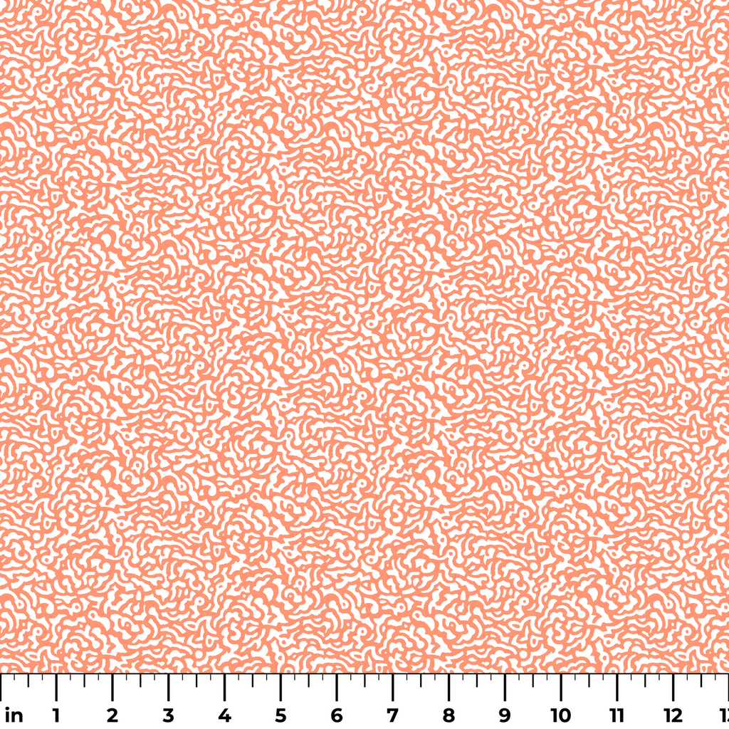 This contemporary coral and white pattern features intricate swirling organic shapes and flowing lines that create a mesmerizing, abstract design perfect for sewing modern home decor and apparel.