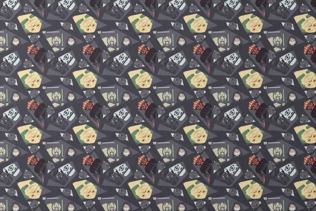 Showcase your love for iconic villains with this stylish geometric design featuring famous sci-fi and fantasy antagonists in a striking abstract collage style on a dark background.