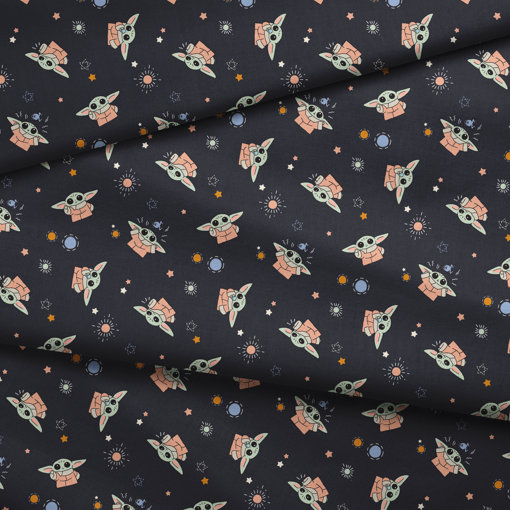 Adorable STAR WARS™ Grogu with cosmic stars and planets on a black background. Perfect for fans of the beloved character from the galaxy far, far away.