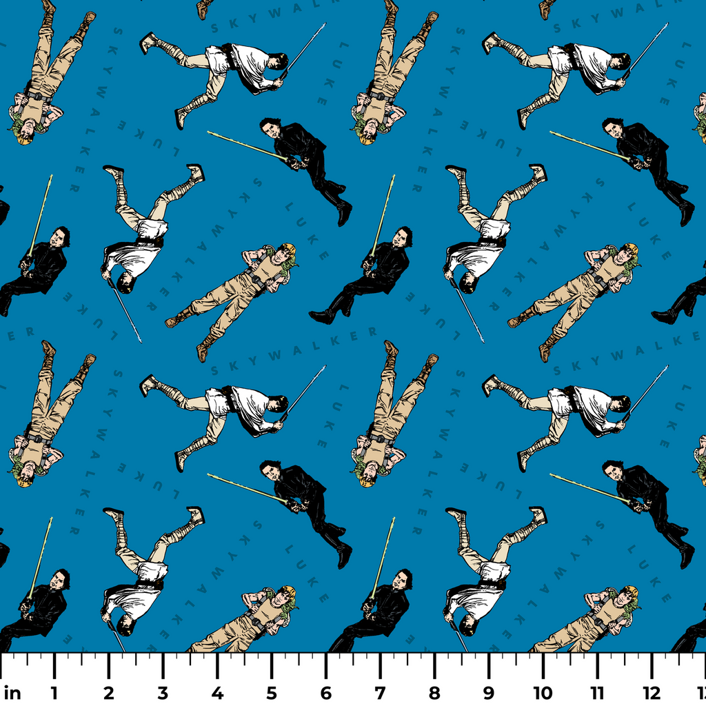 Retro STAR WARS Luke Skywalker in various poses tossed on a vibrant blue background. Perfect for the STAR WARS fan!